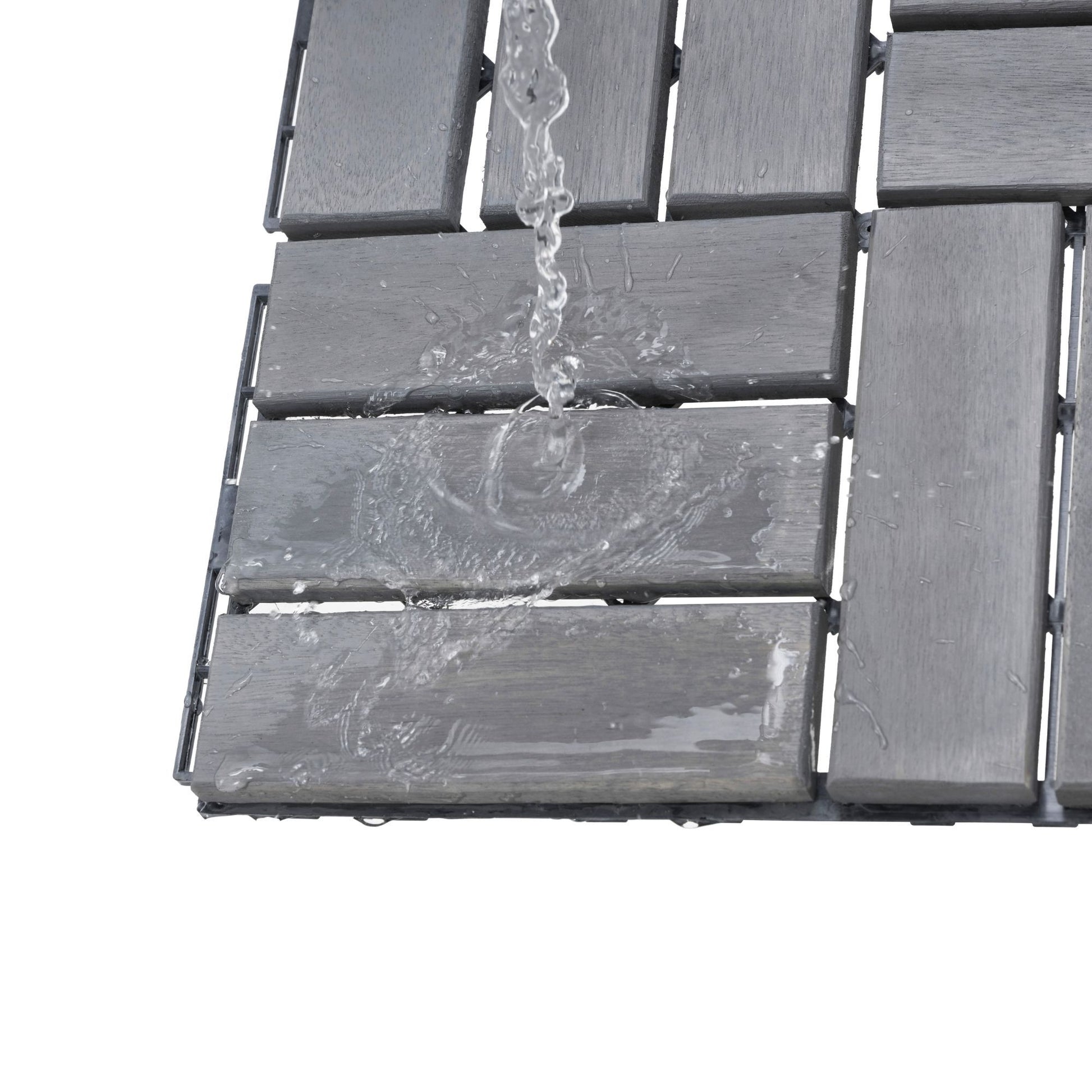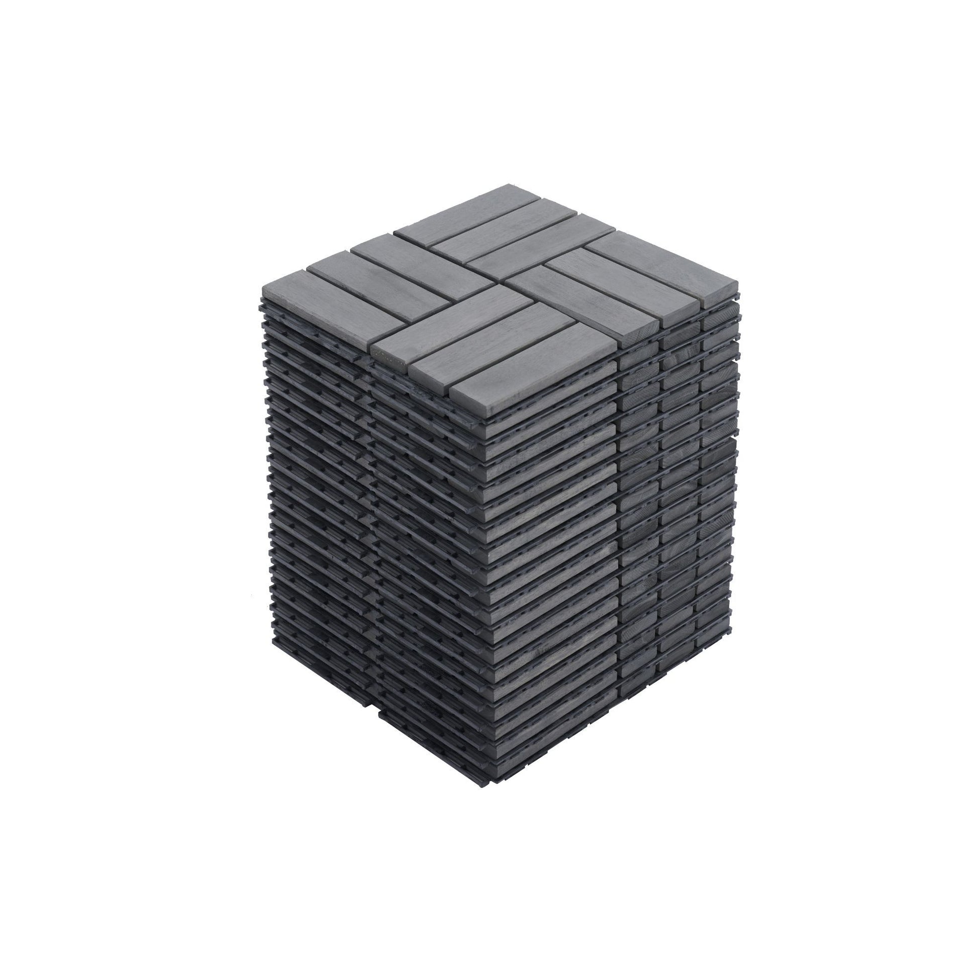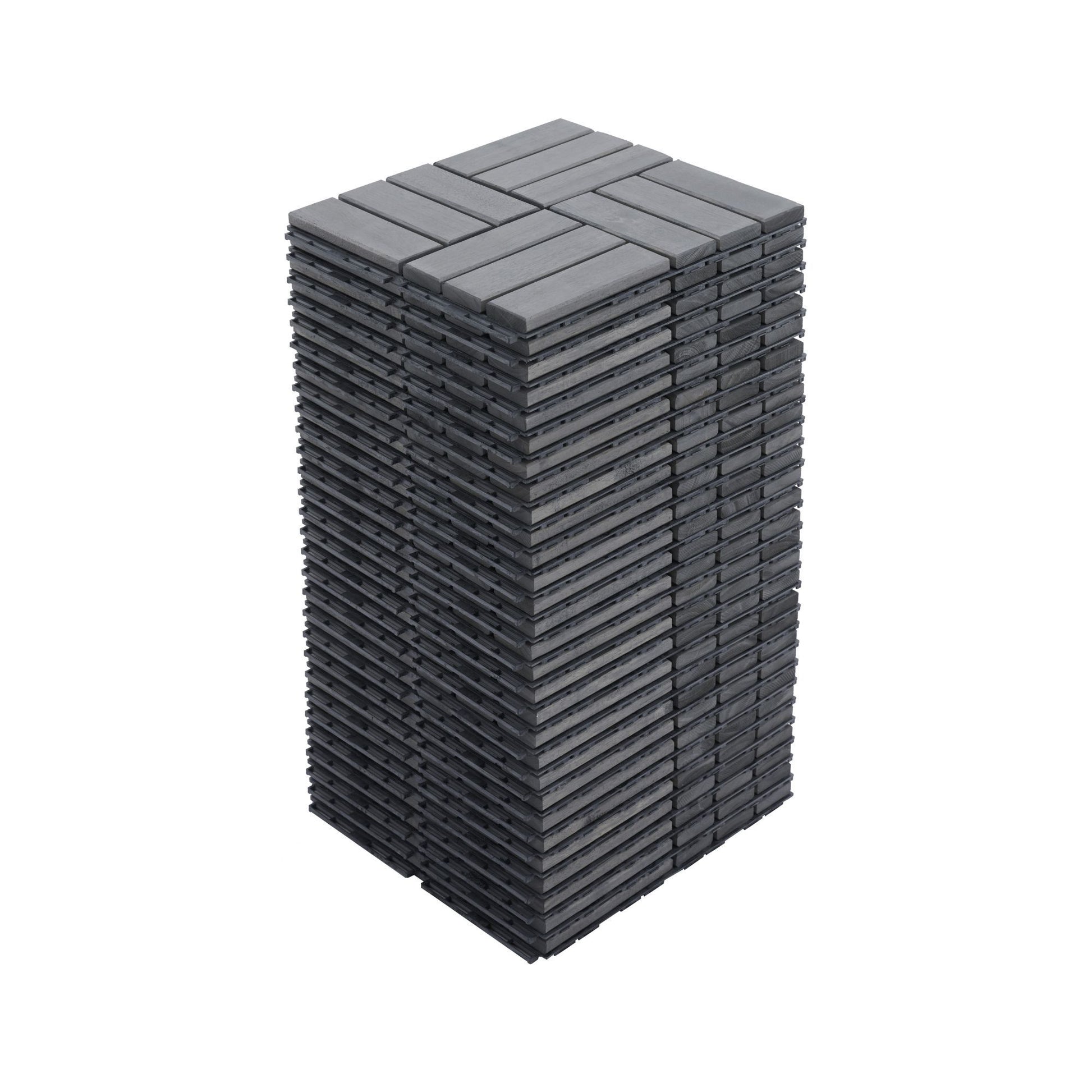 10 Piece Interlocking Deck Tiles Checker Pattern, Square Acacia Hardwood Outdoor Flooring For Patio, Bancony, Pool Side - Light Gray