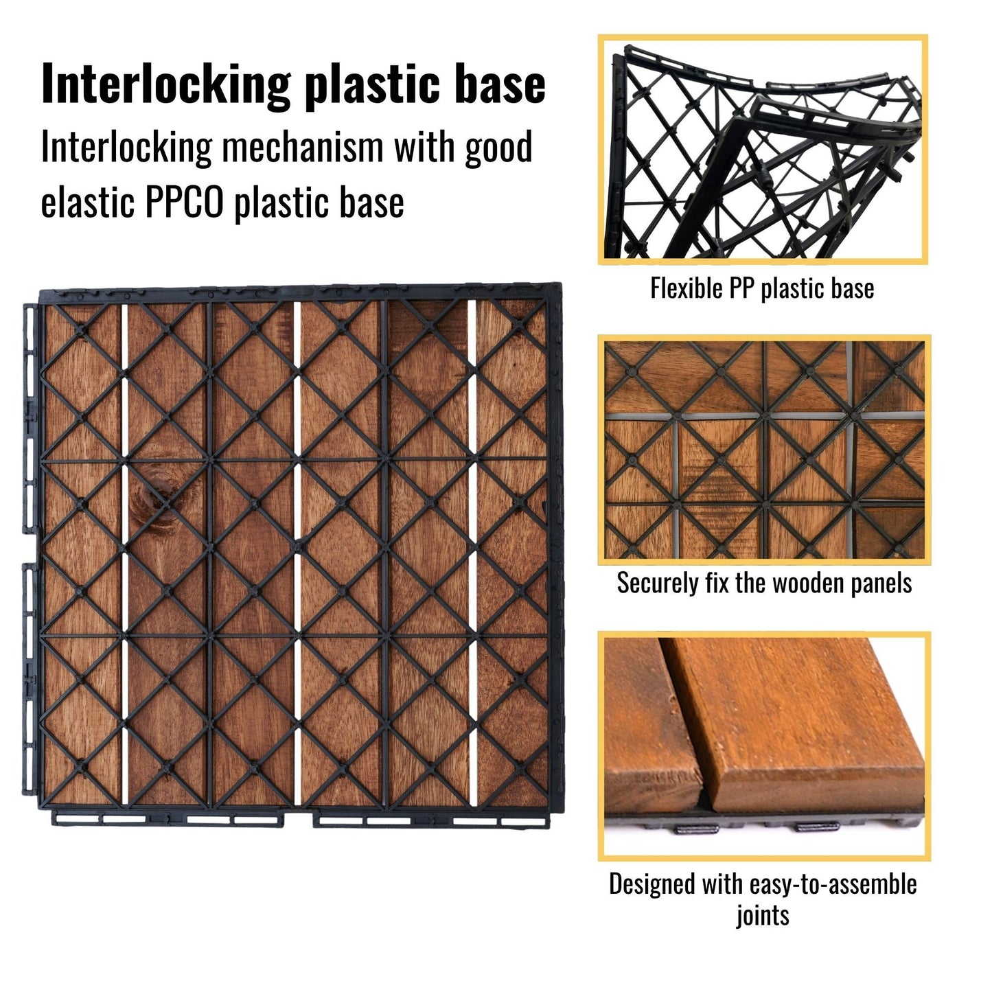 10 Piece Interlocking Deck Tiles Striped Pattern, Square Acacia Hardwood Outdoor Flooring For Patio, Bancony, Pool Side - Brown