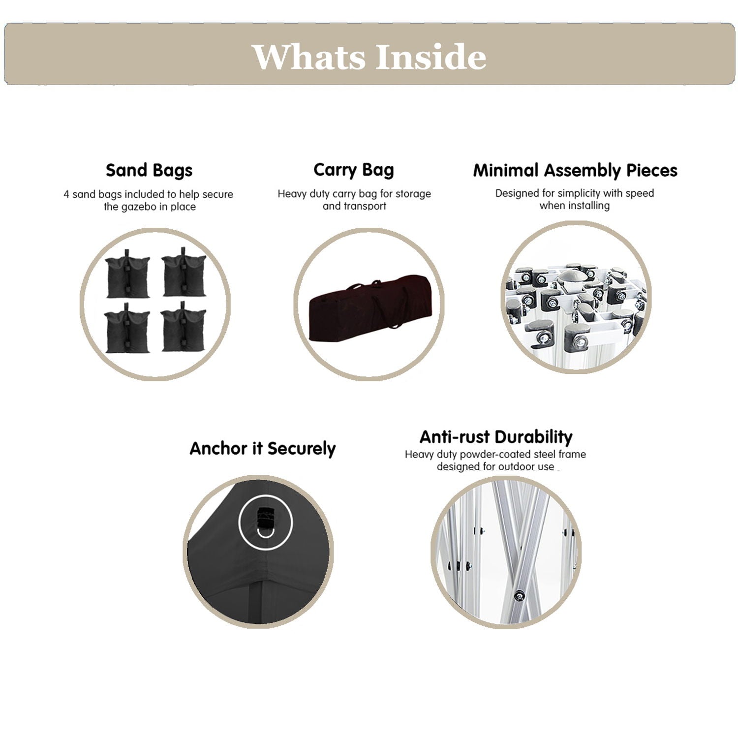 - High Quality: Made of Oxford fabric with PU coating, this canopy tent is waterproof and blocks 99% of the sun's rays. Includes 4 sandbags, ground nails, and wind ropes for added stability.