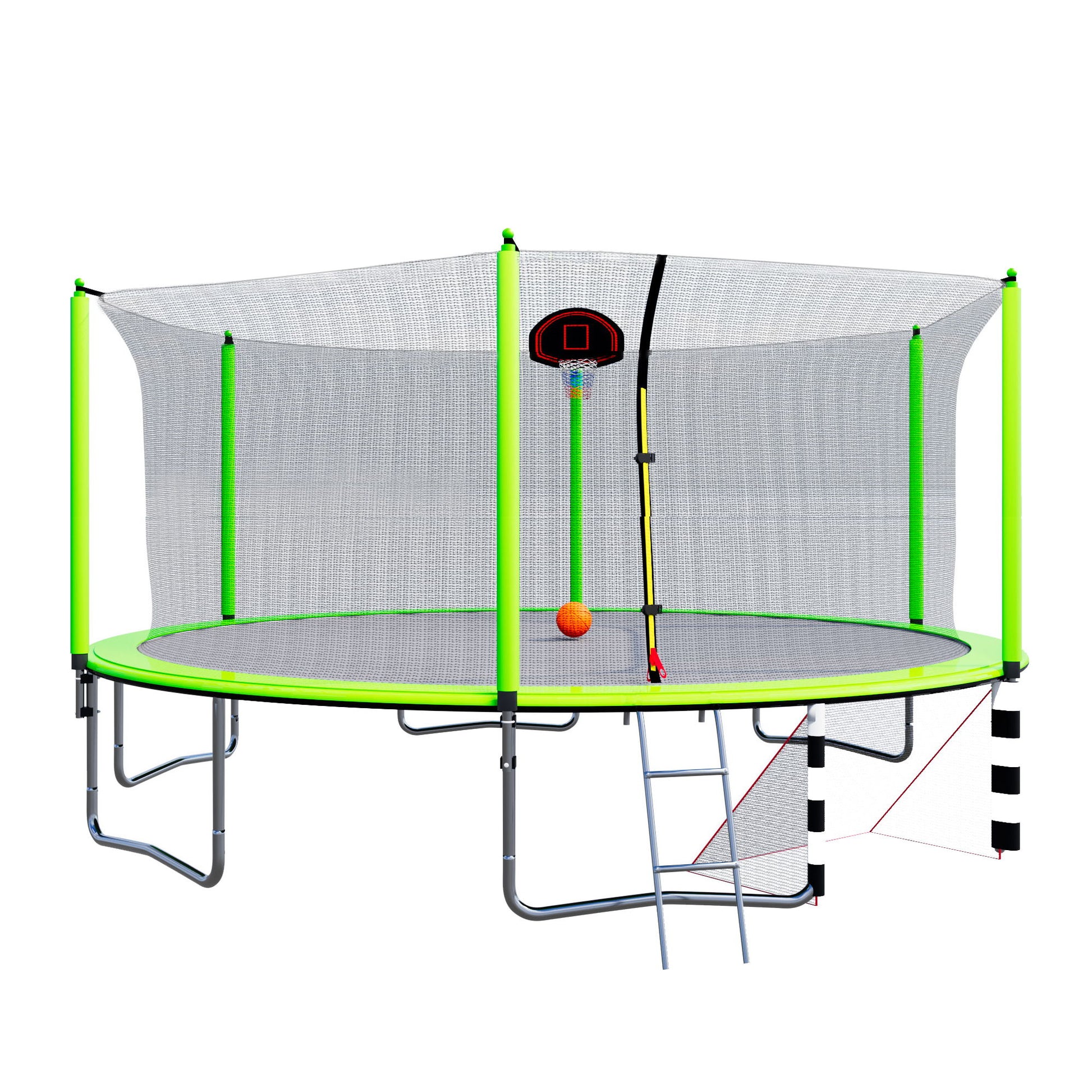 16Ft Trampoline With Basketball Hoop Pump And Ladder (Inner Safety Enclosure) With Soccer Goal - Green