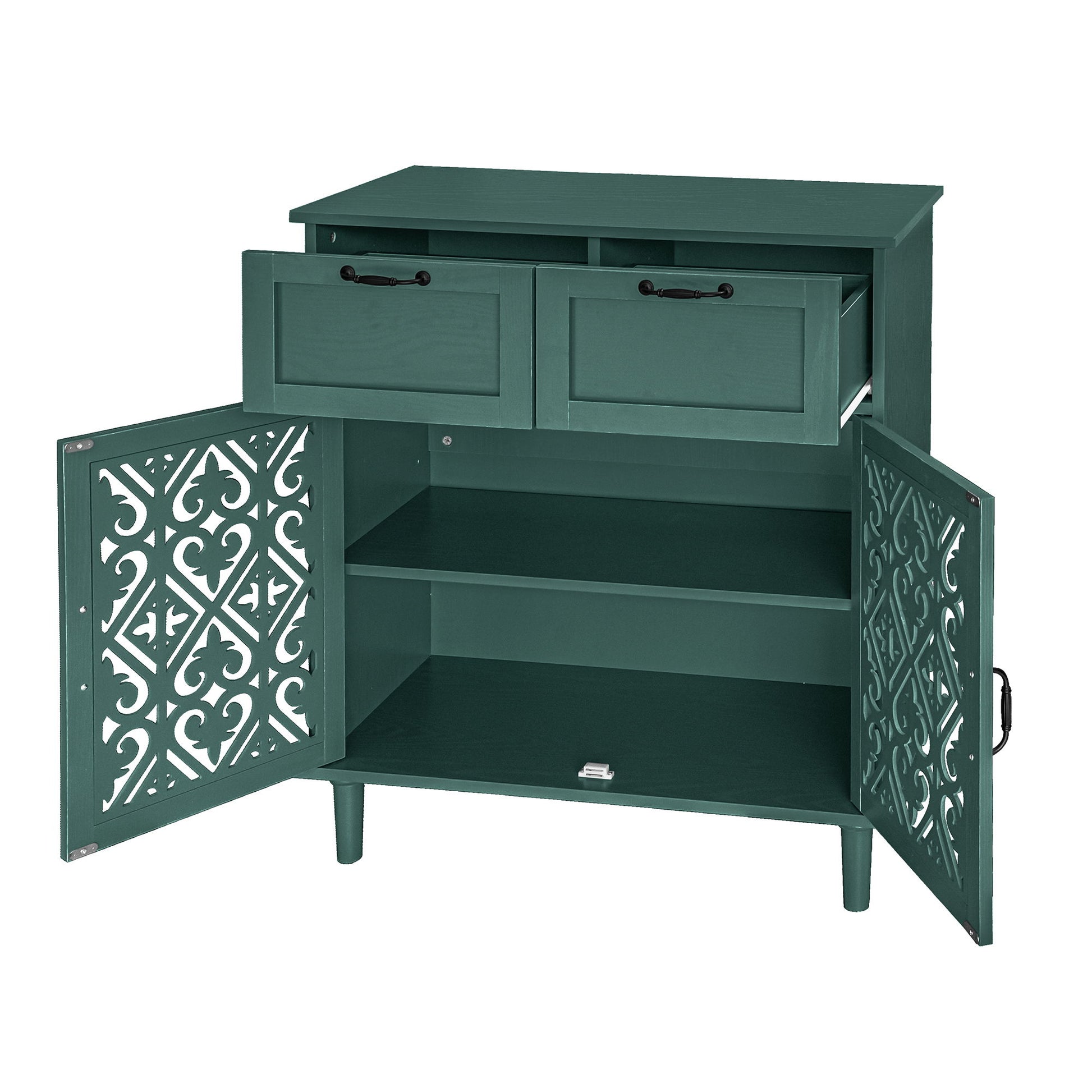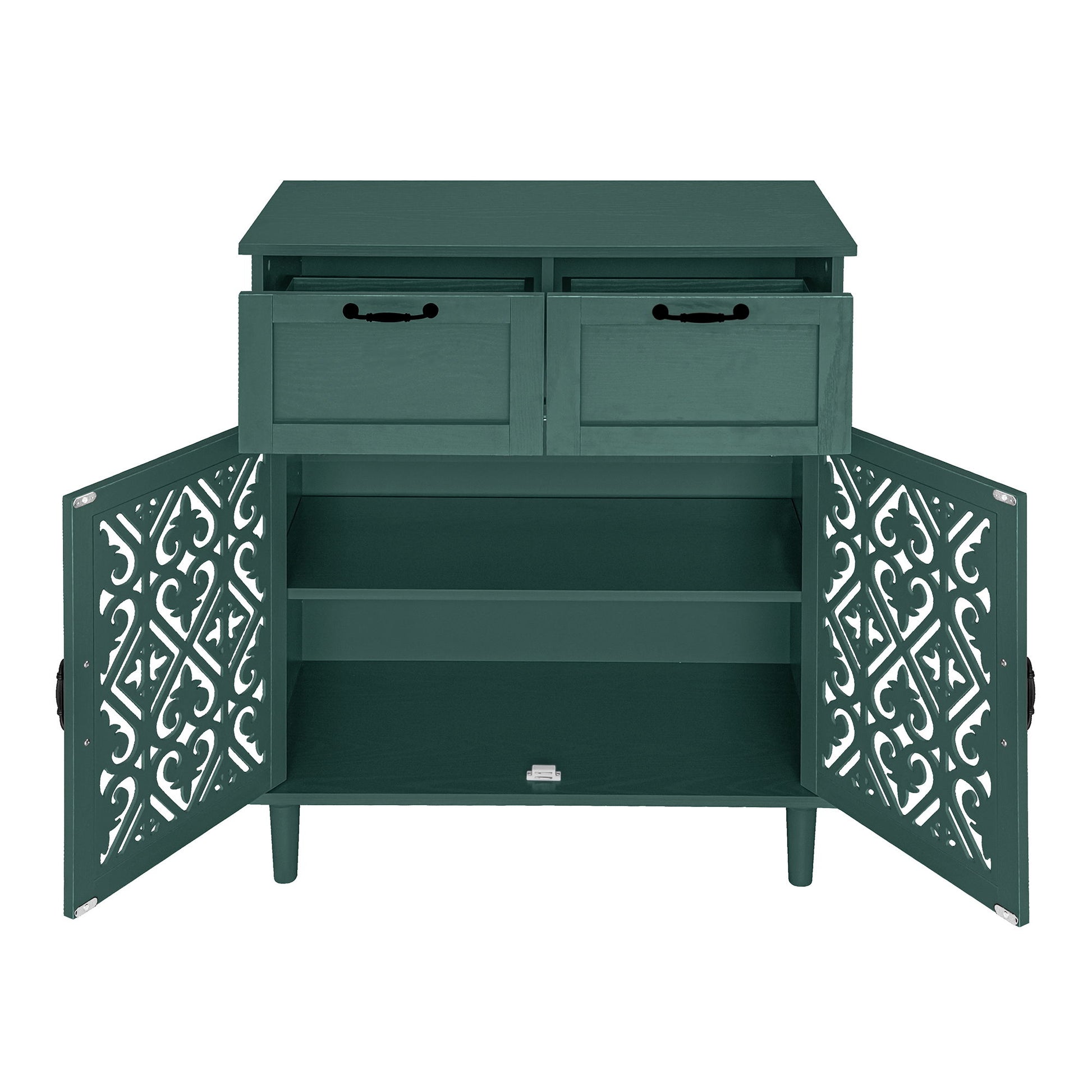 2 Door 2 Drawer Cabinet, American Furniture, Suitable For Bedroom, Living Room, Study - Dark Green