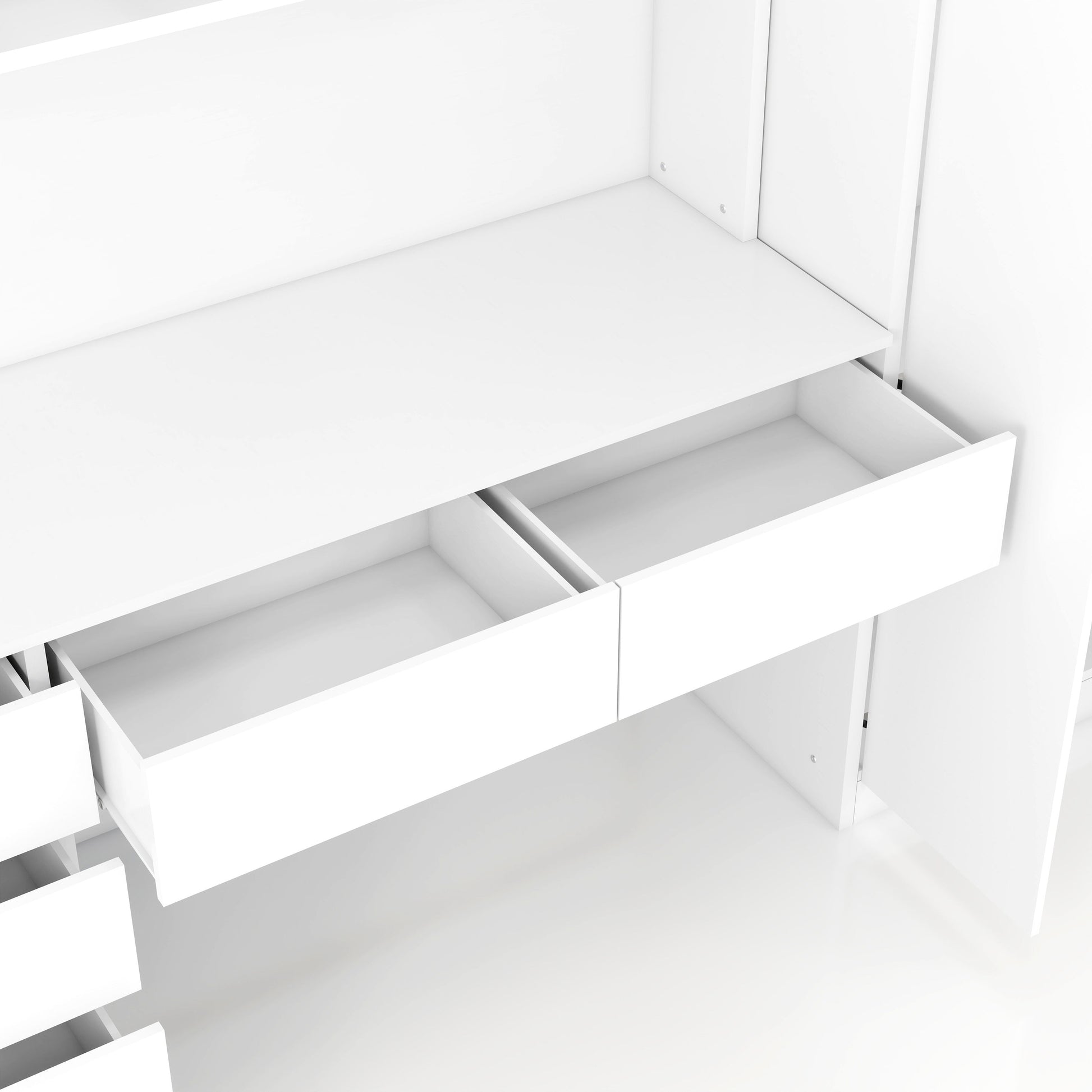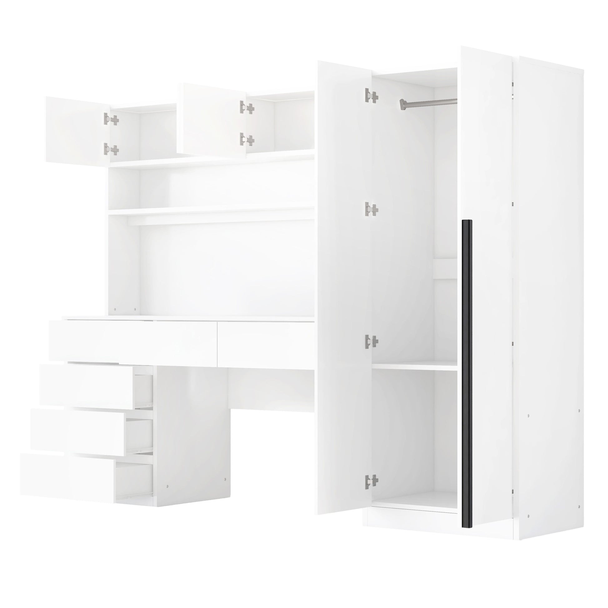 Organized Workspace: The desk includes two upper storage cabinets, a lower shelf, and six drawers, providing an organized and efficient workspace for studying or working. This wardrobe is perfect for the bedroom, providing plenty of storage space.