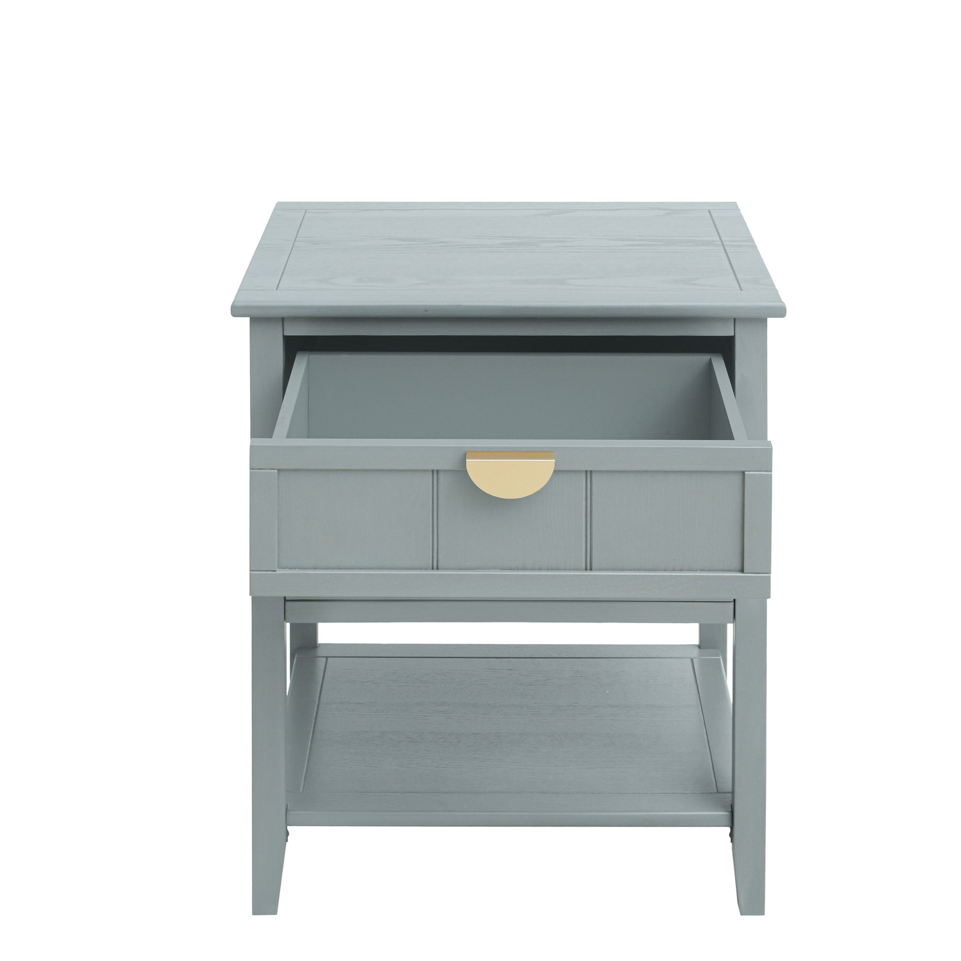 2 Drawer Side Table, American Style, End Table, Suitable For Bedroom, Living Room, Study - Light Gray