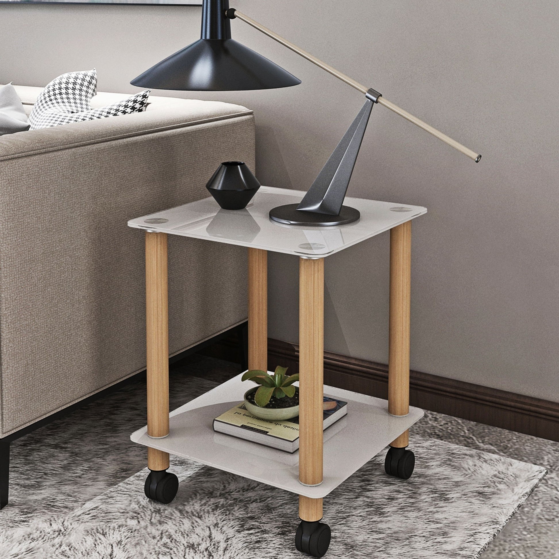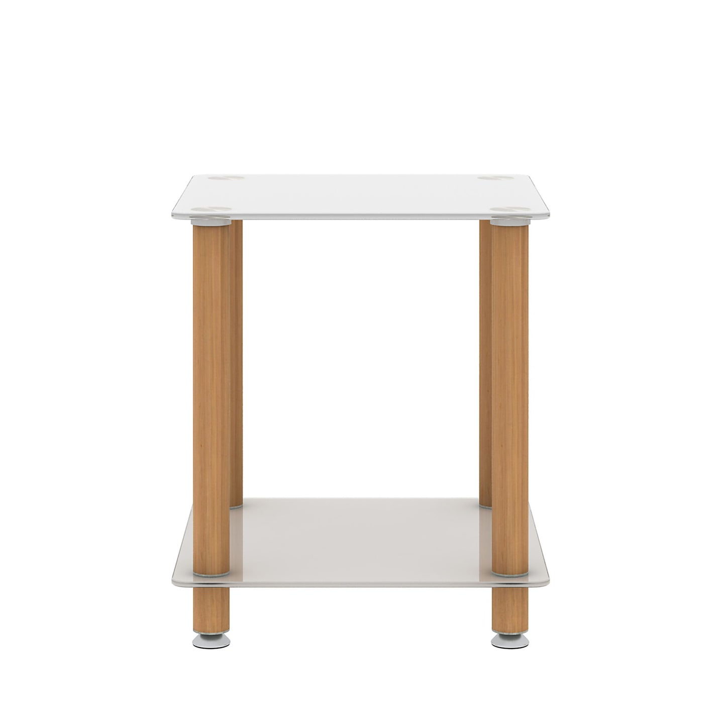 2 Piece Side Table, 2 Tier Space End Table, Modern Night Stand, Sofa Table, Side Table With Storage Shelve - White / Oak