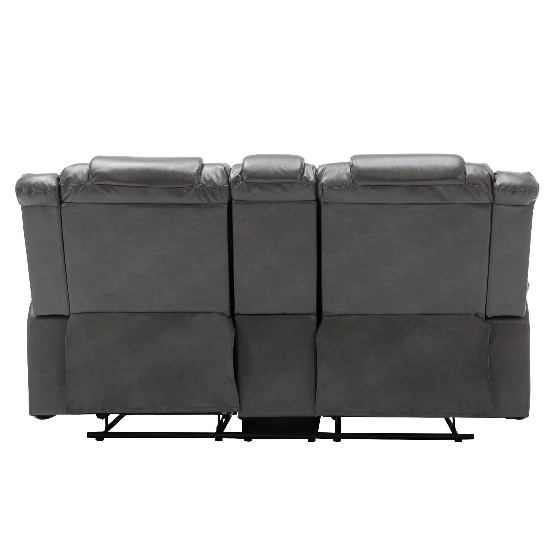 2 Seater Home Theater Recliner Manual Recliner Chair With A Storage Box And Two Cup Holders For Living Room - Gray