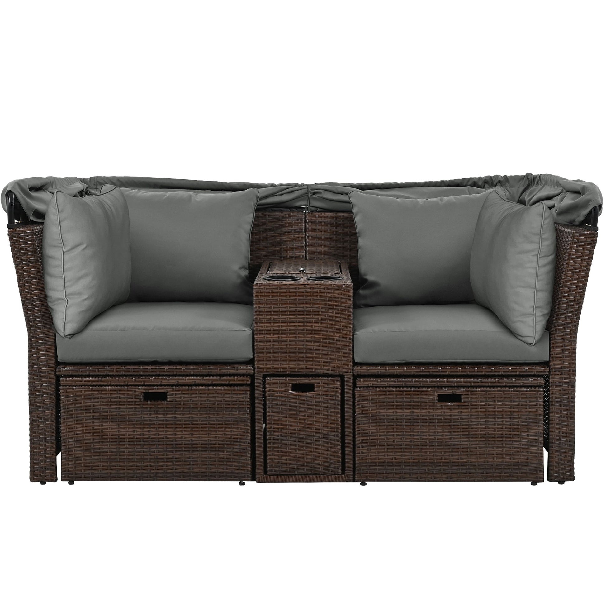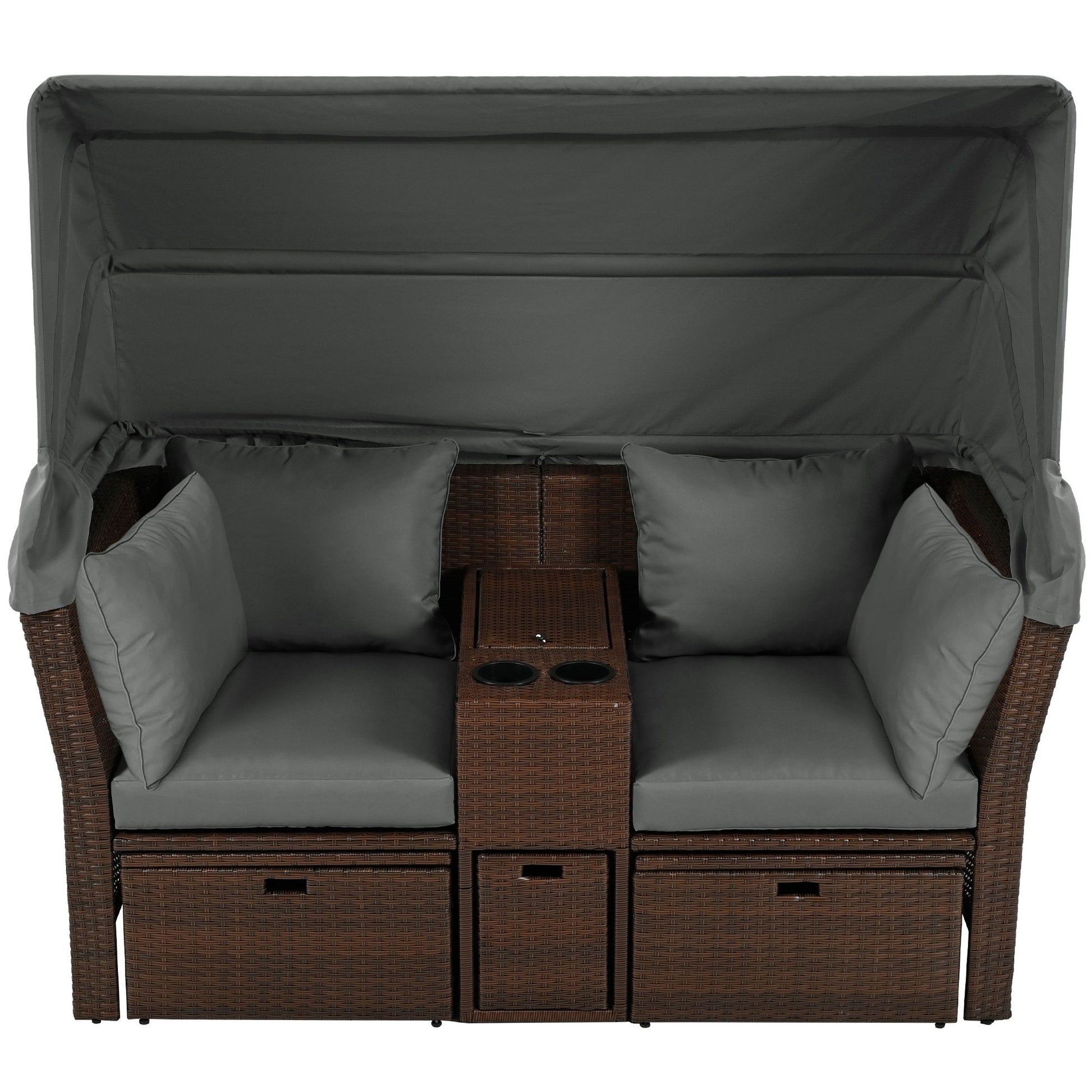 2 Seater Outdoor Patio Daybed Outdoor Double Daybed Outdoor Loveseat Sofa Set With Foldable Awning And Cushions For Garden, Balcony, Poolside - Gray