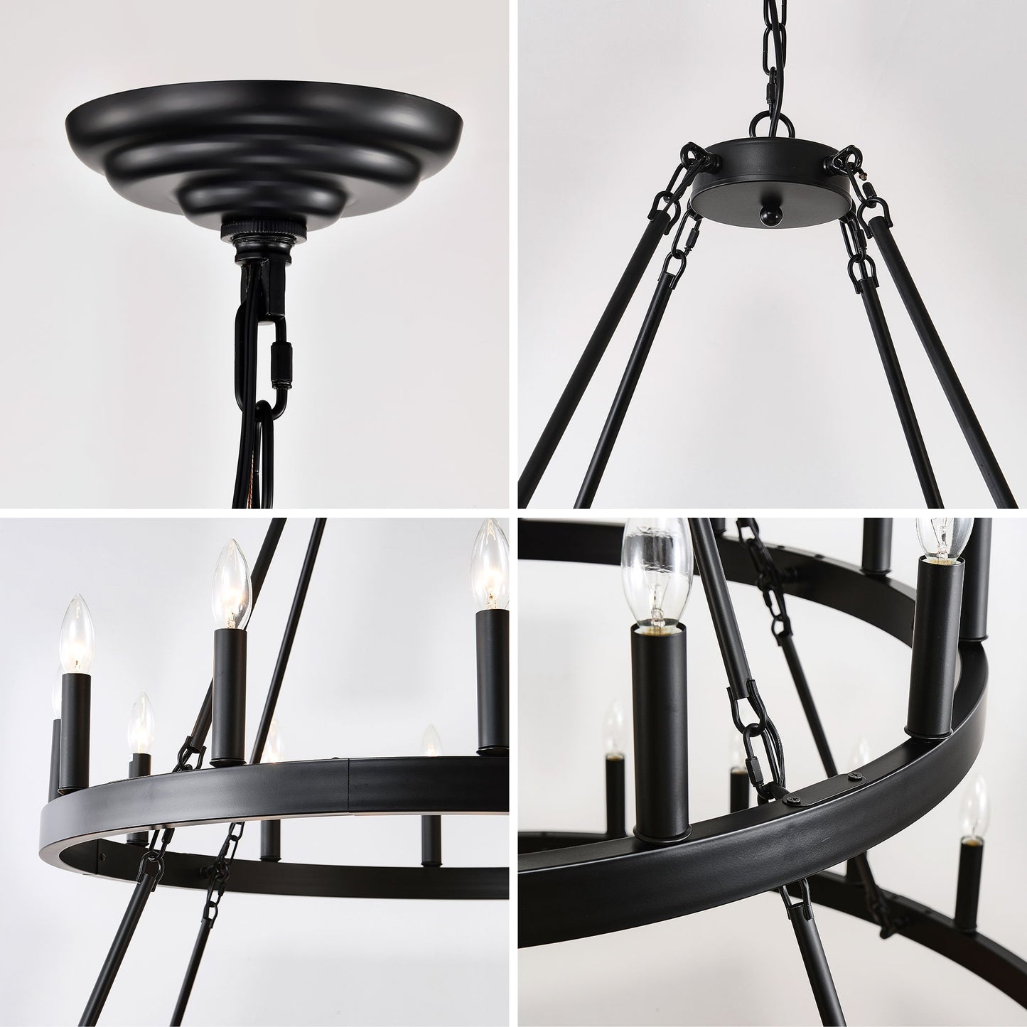 - Vintage Design: The matte black wagon wheel chandelier offers a nostalgic industrial style.