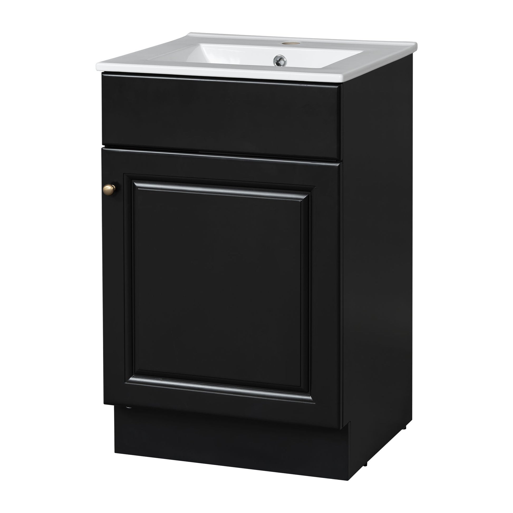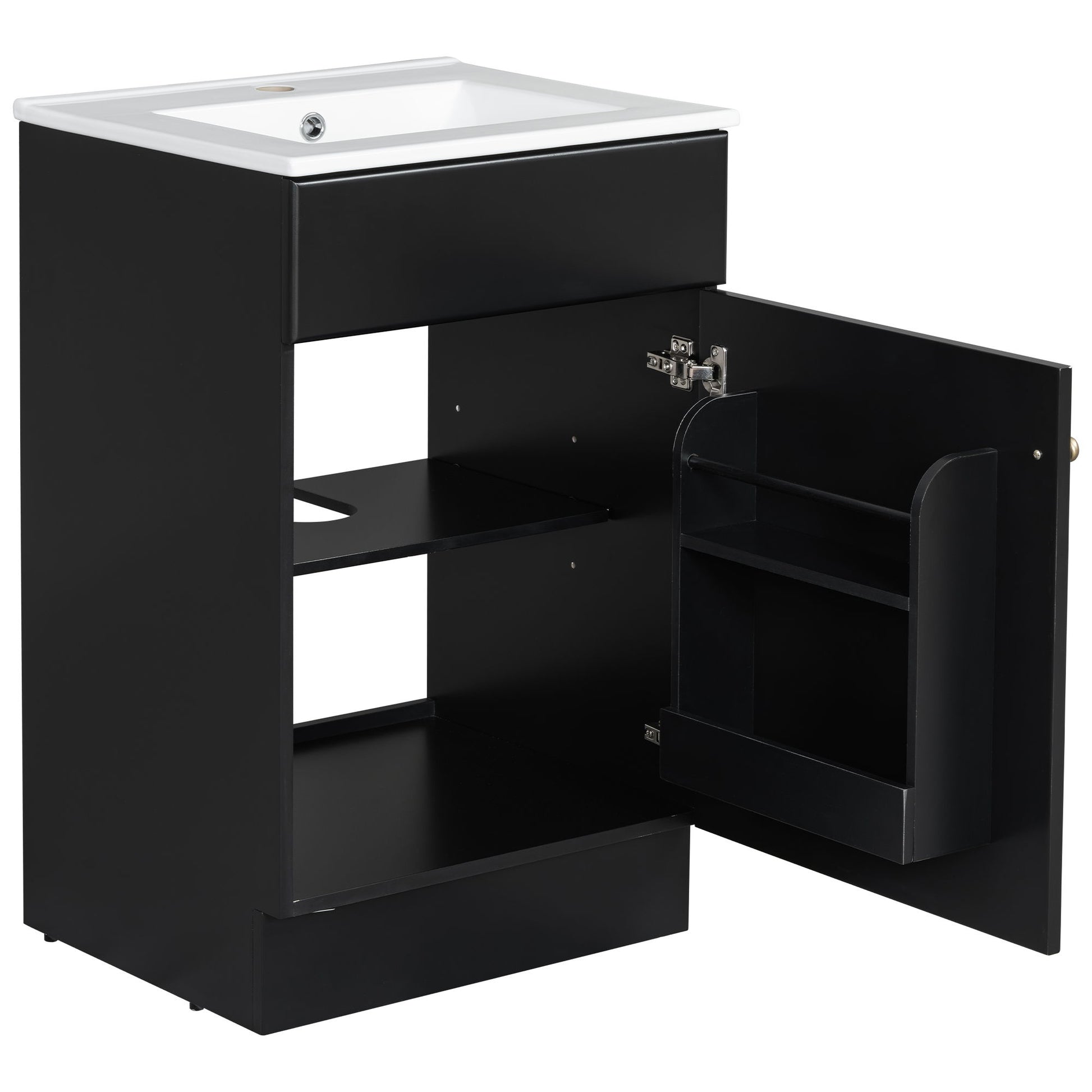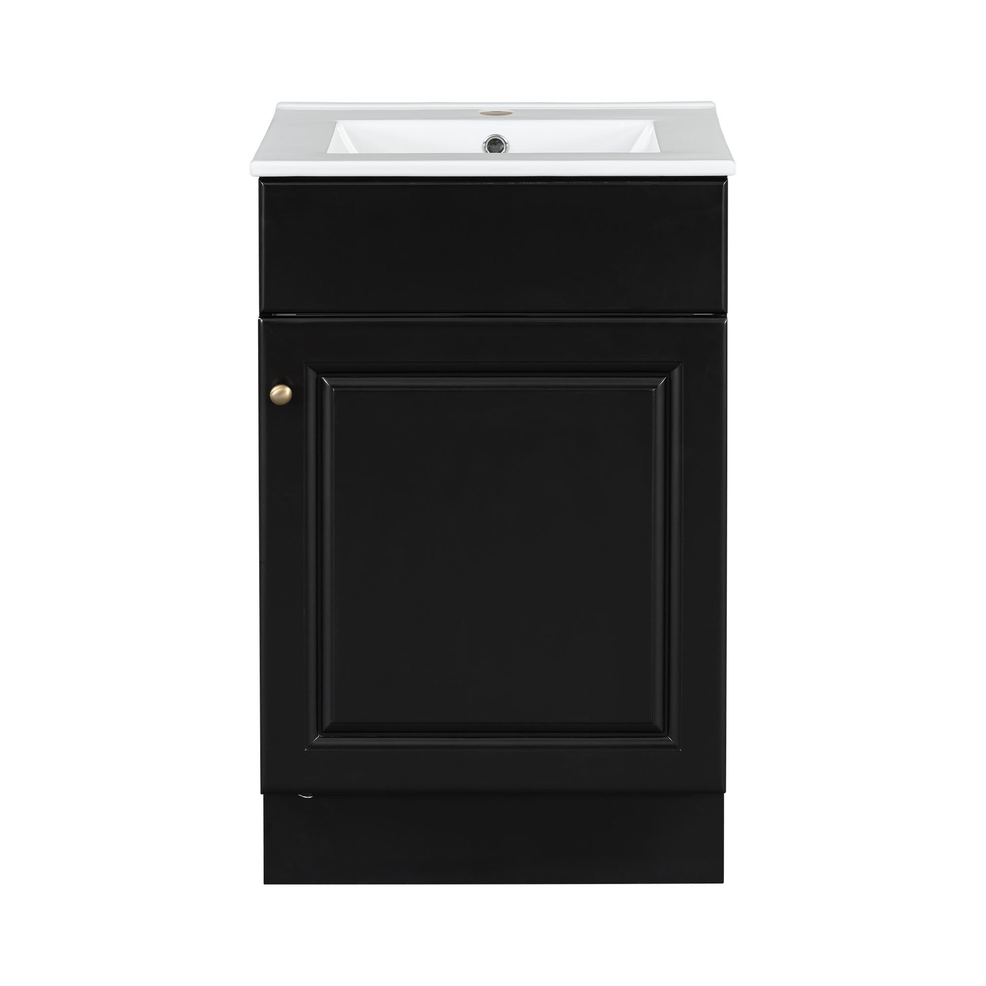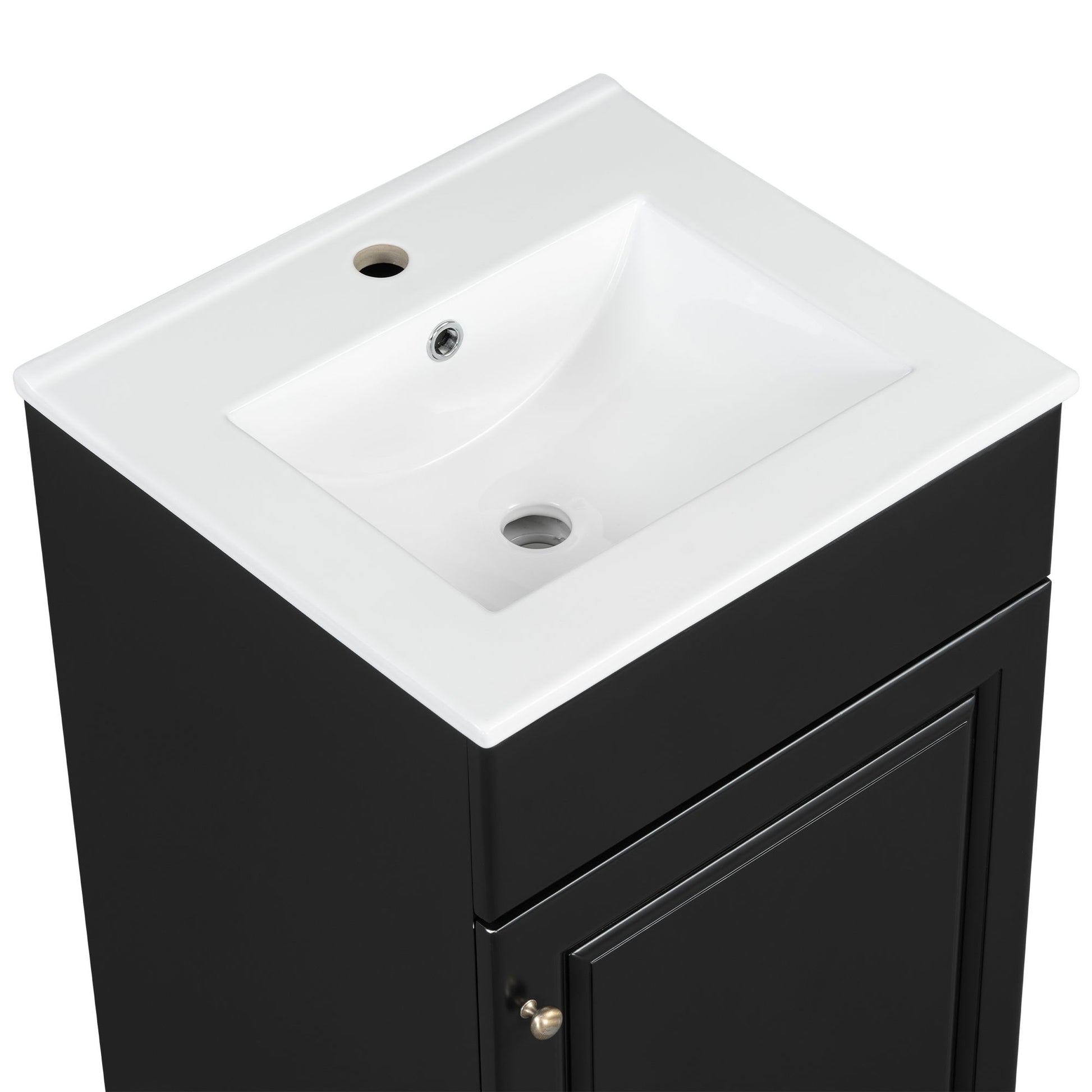 20" Bathroom Vanity With Sink, Freestanding Cabinet With Door Shelf And Adjustable Shelf, And Ceramic Construction - Black