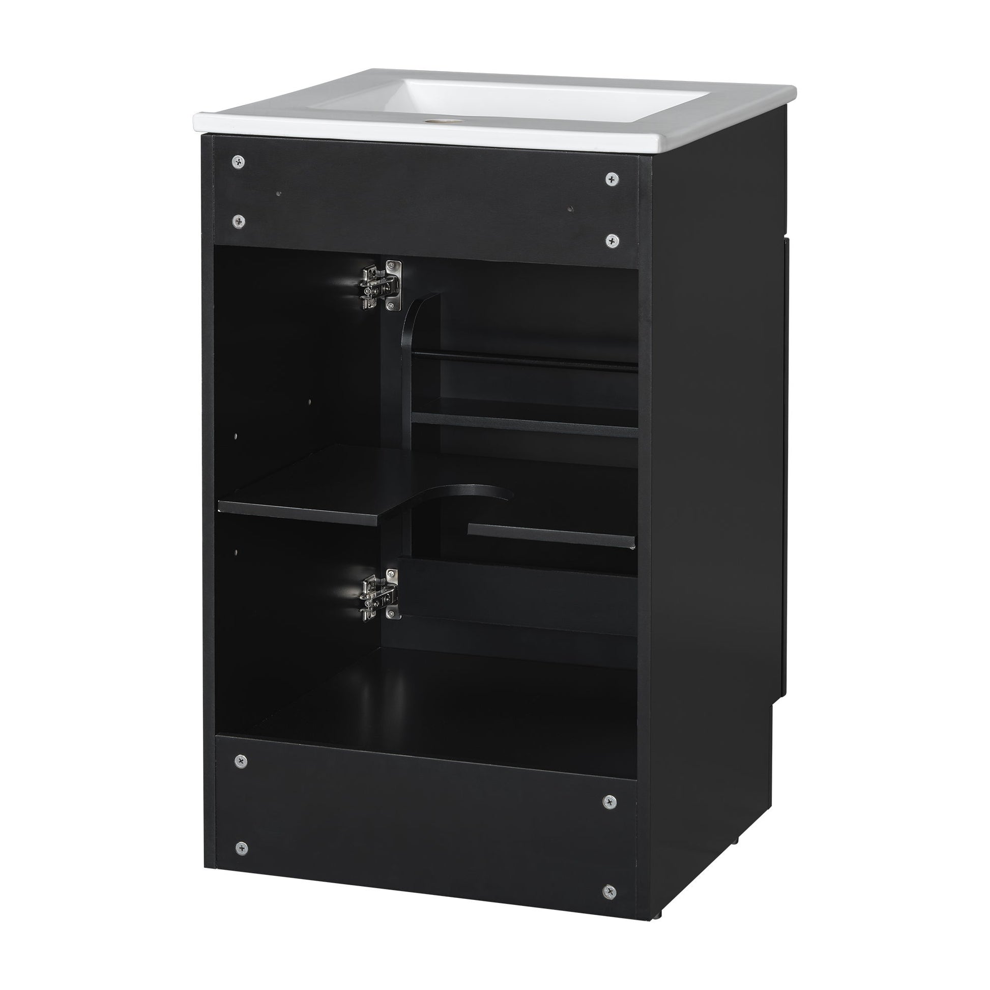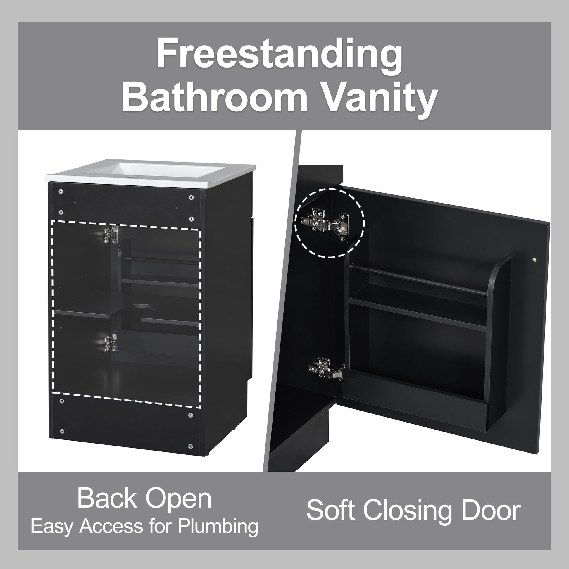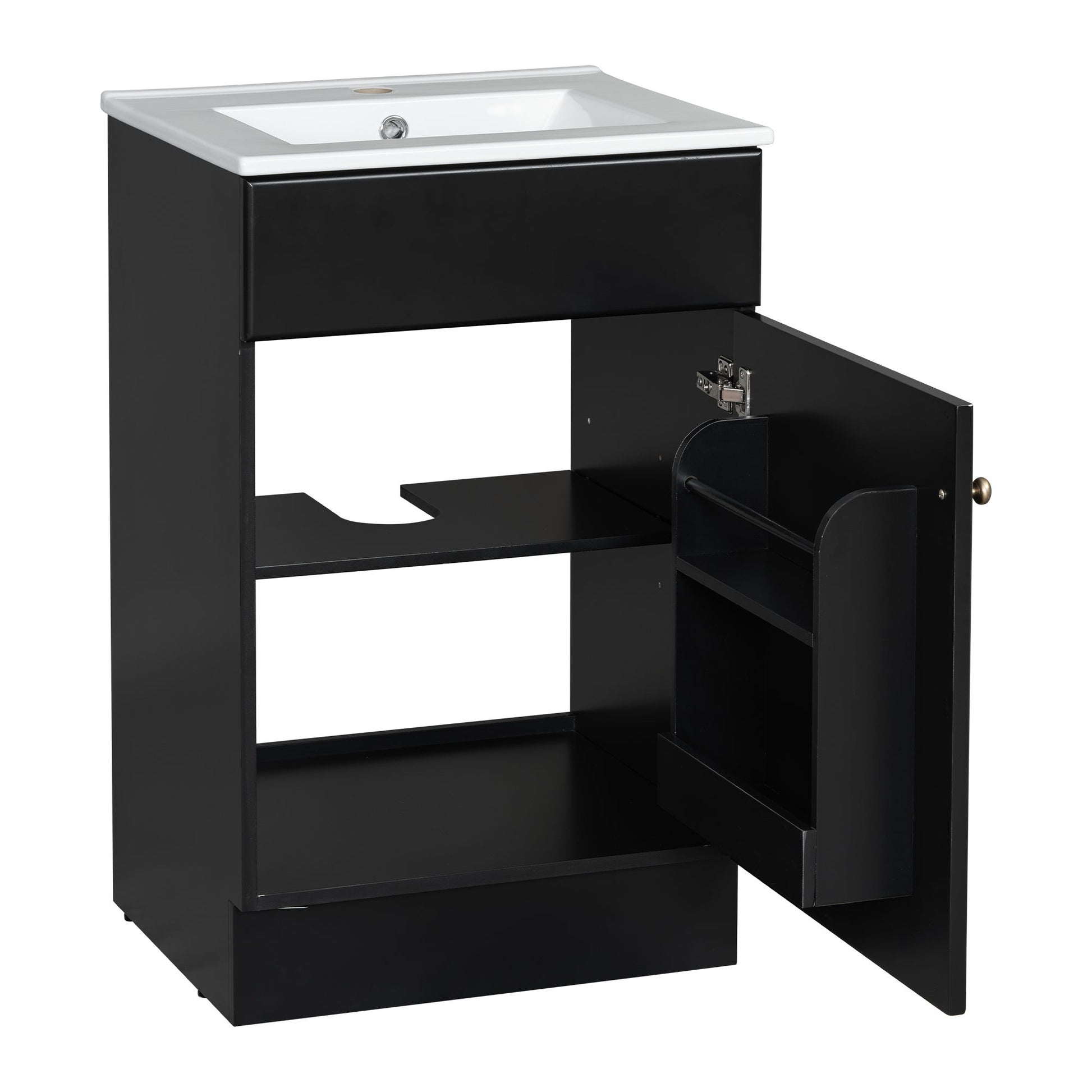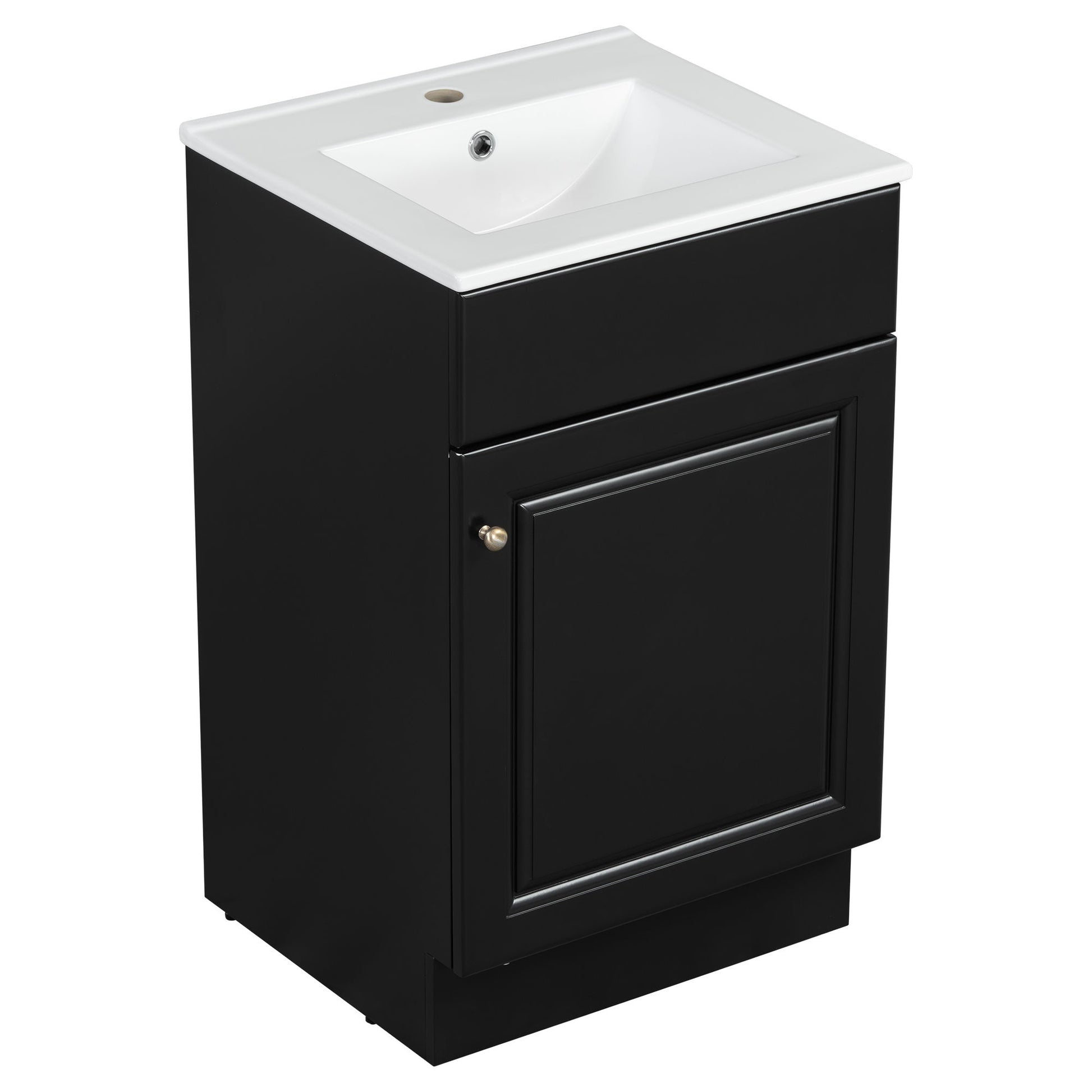 20" Bathroom Vanity With Sink, Freestanding Cabinet With Door Shelf And Adjustable Shelf, And Ceramic Construction - Black