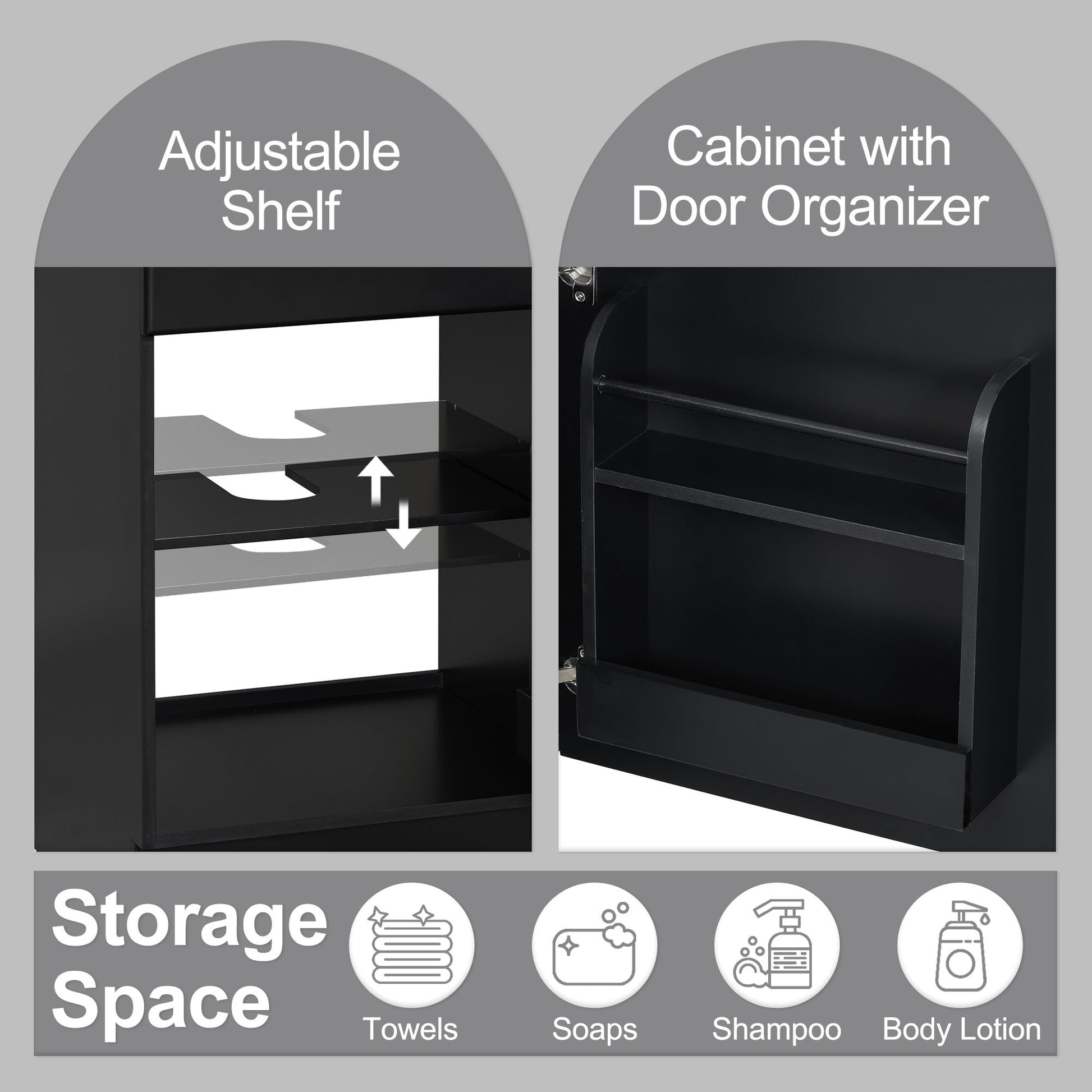 - Storage Space: Includes a door shelf and adjustable shelf for organized storage of toiletries and essentials.