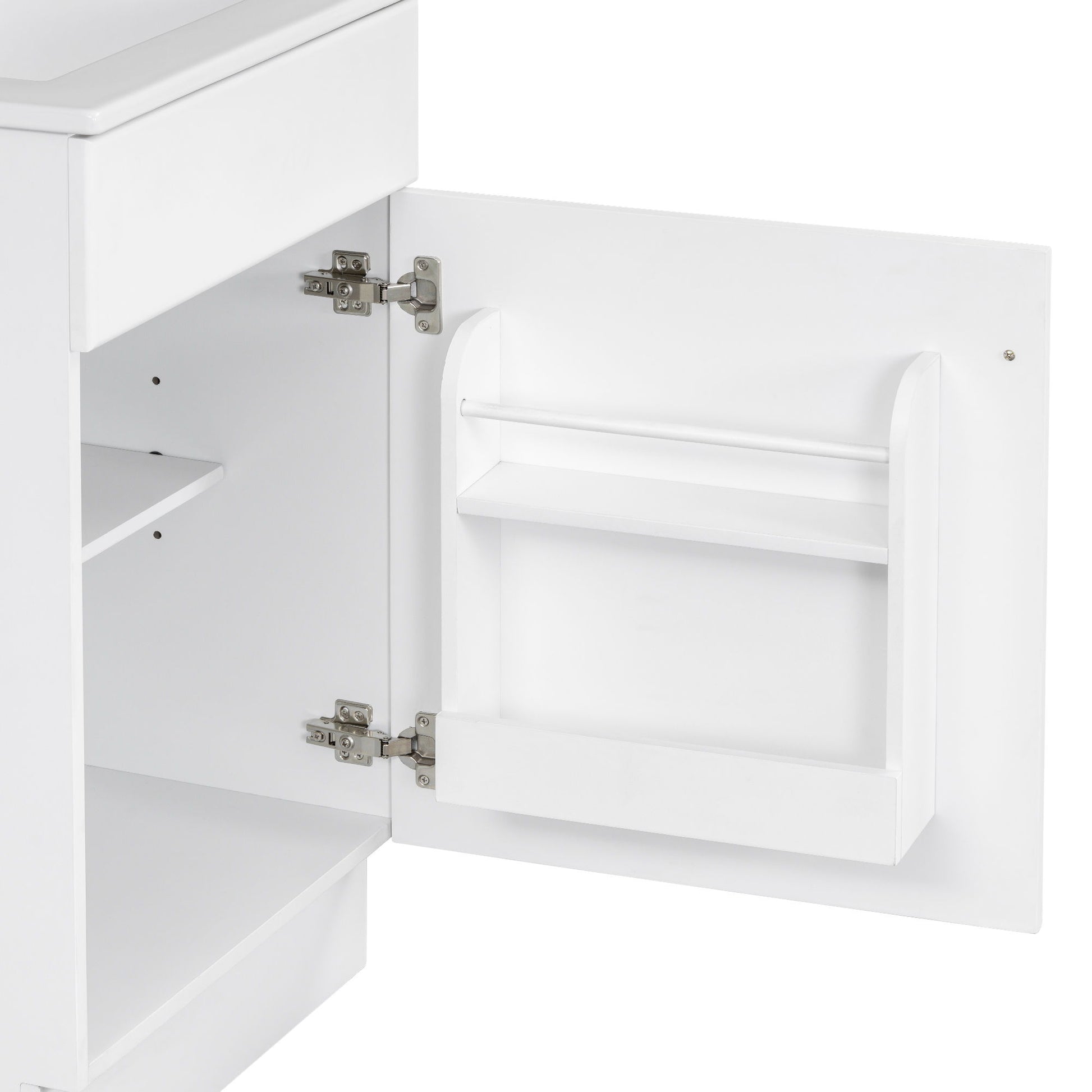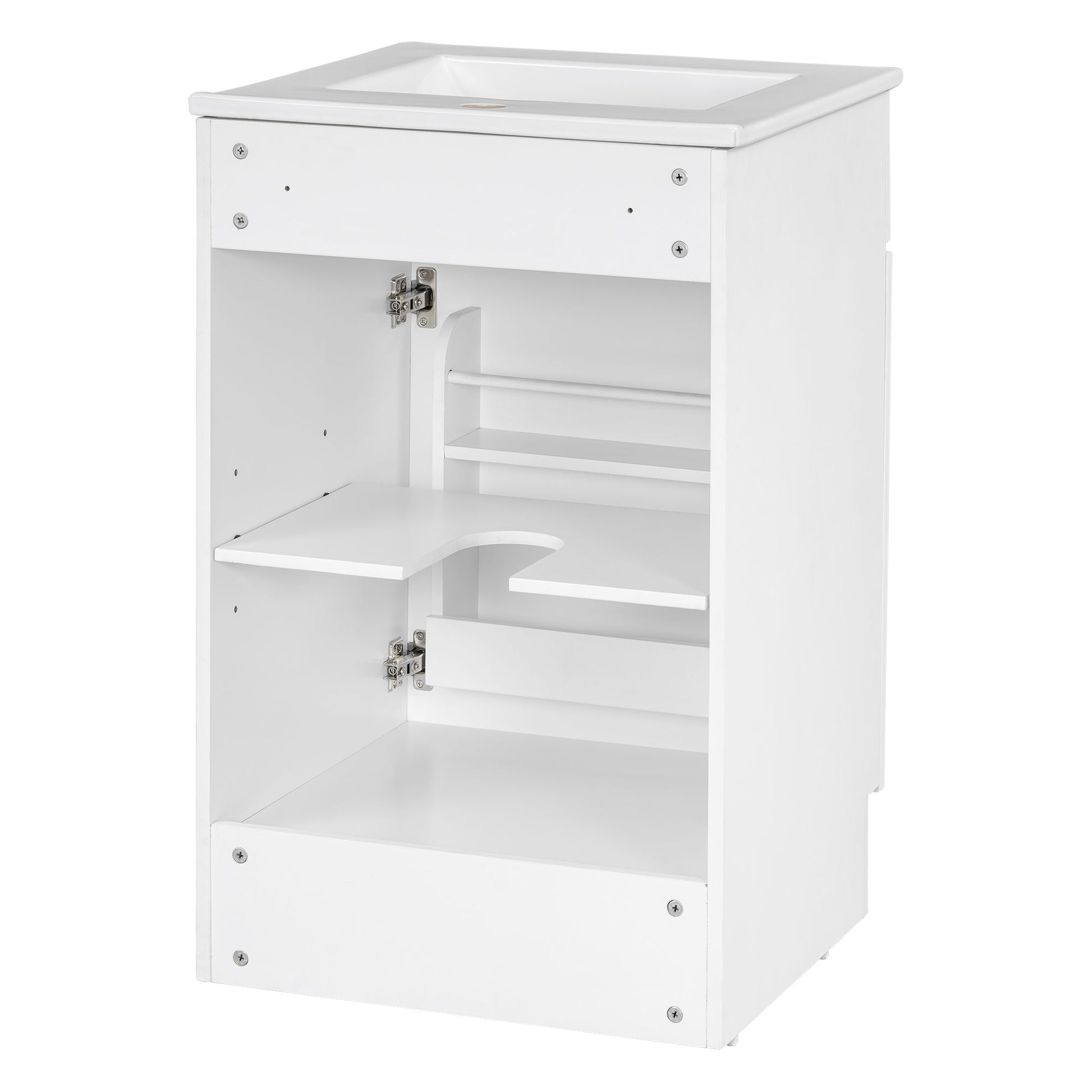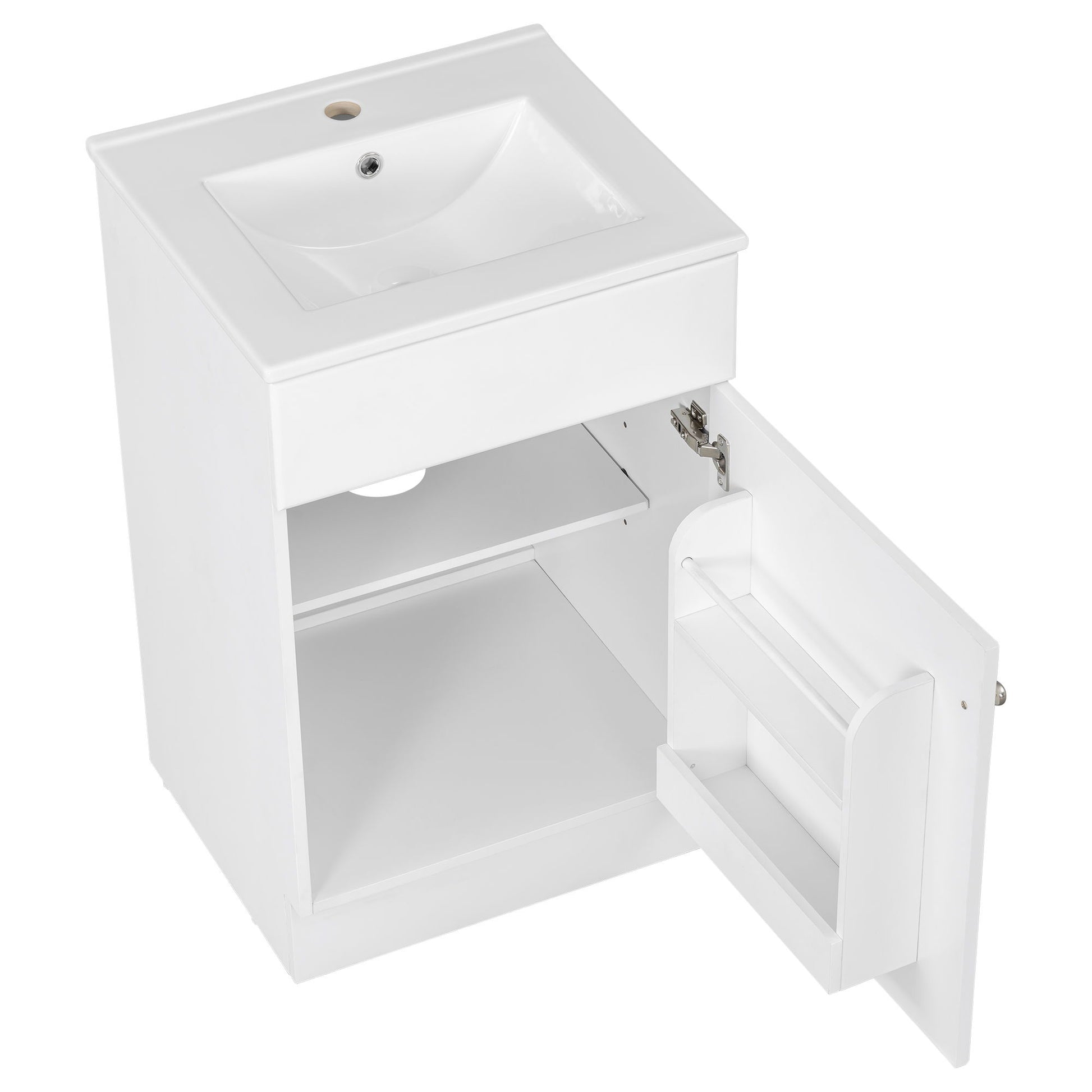 20" Bathroom Vanity With Sink, Freestanding Cabinet With Door Shelf And Adjustable Shelf, And Ceramic Construction - White