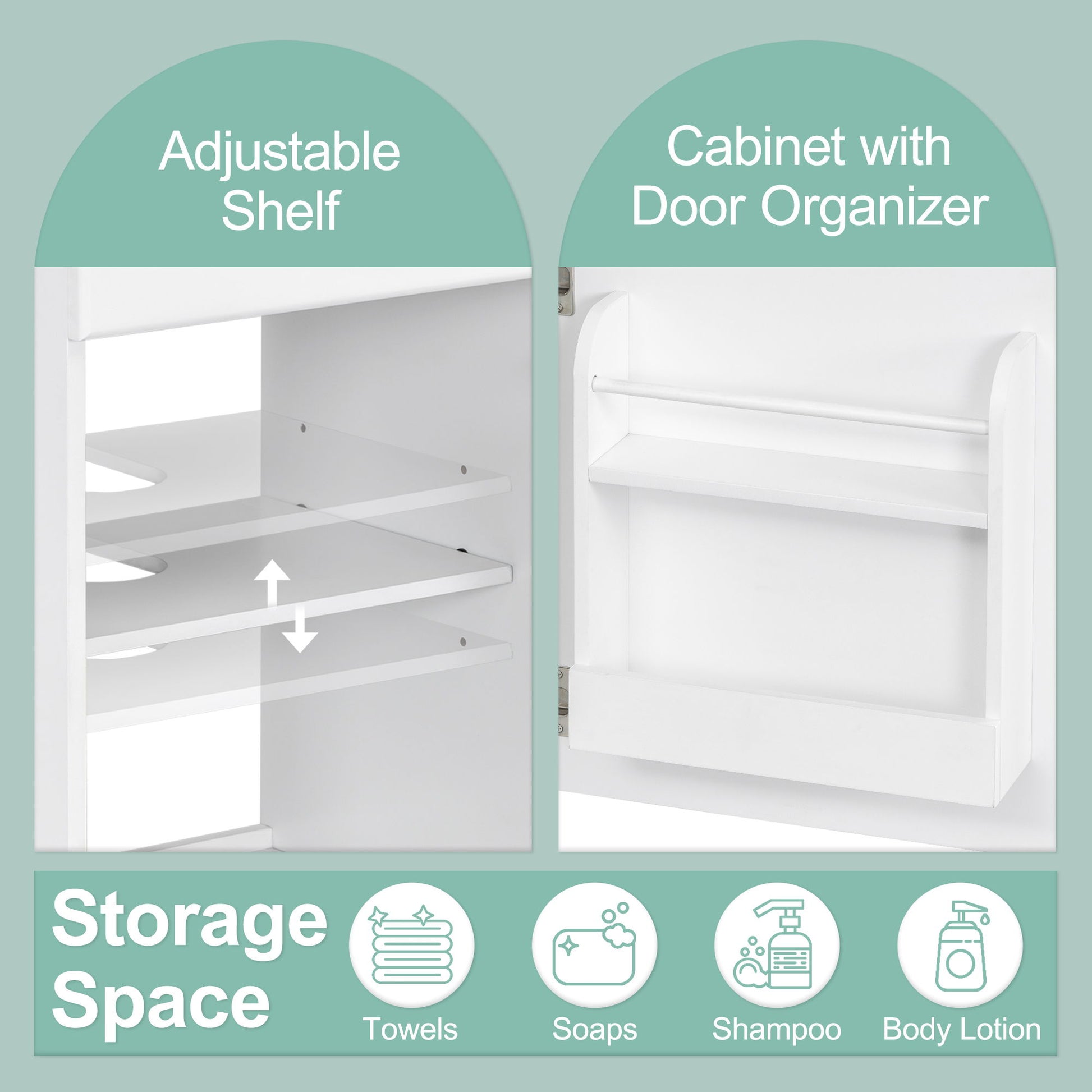 - Storage Space: Includes a door shelf and adjustable cabinet shelf to organize toiletries and keep them dust-free.