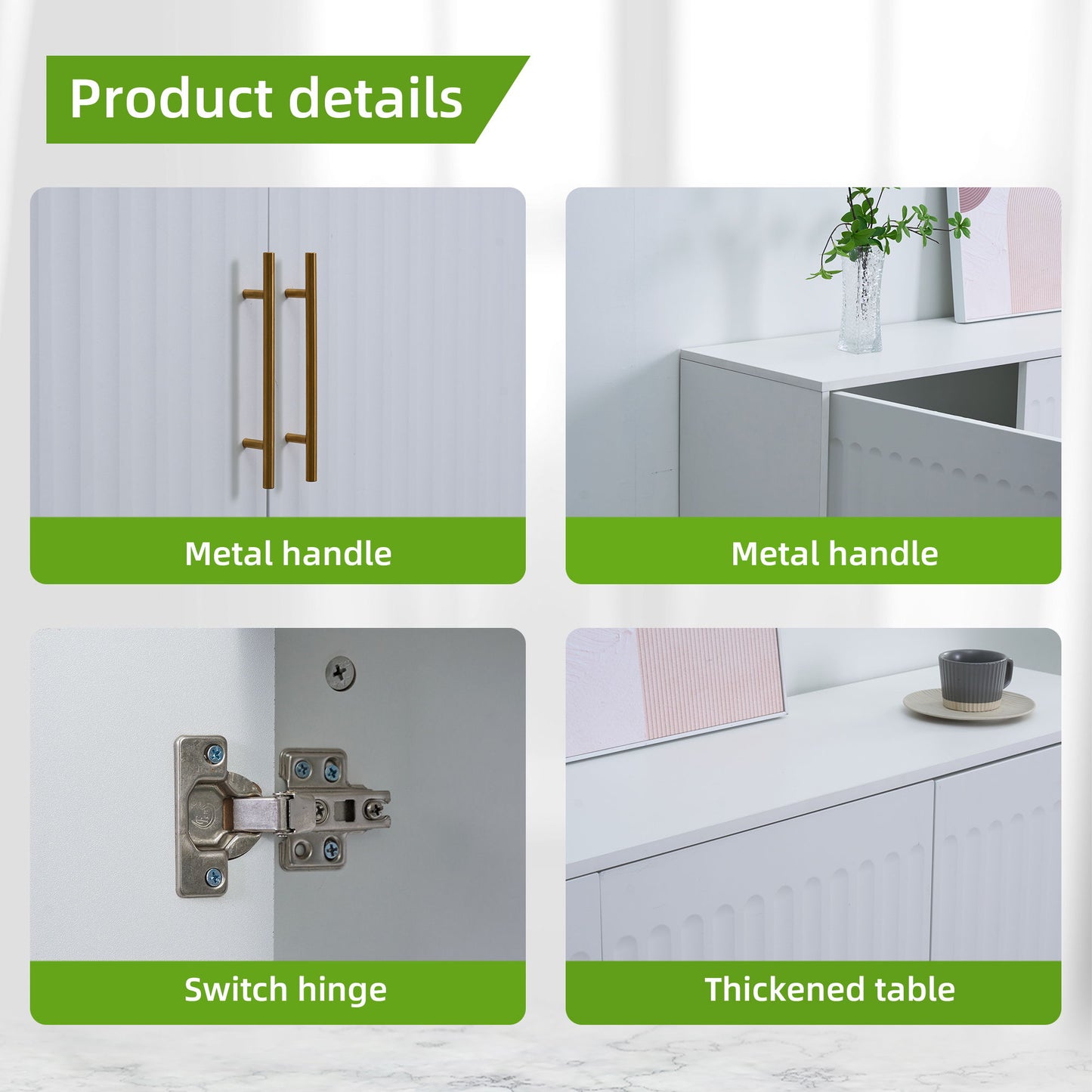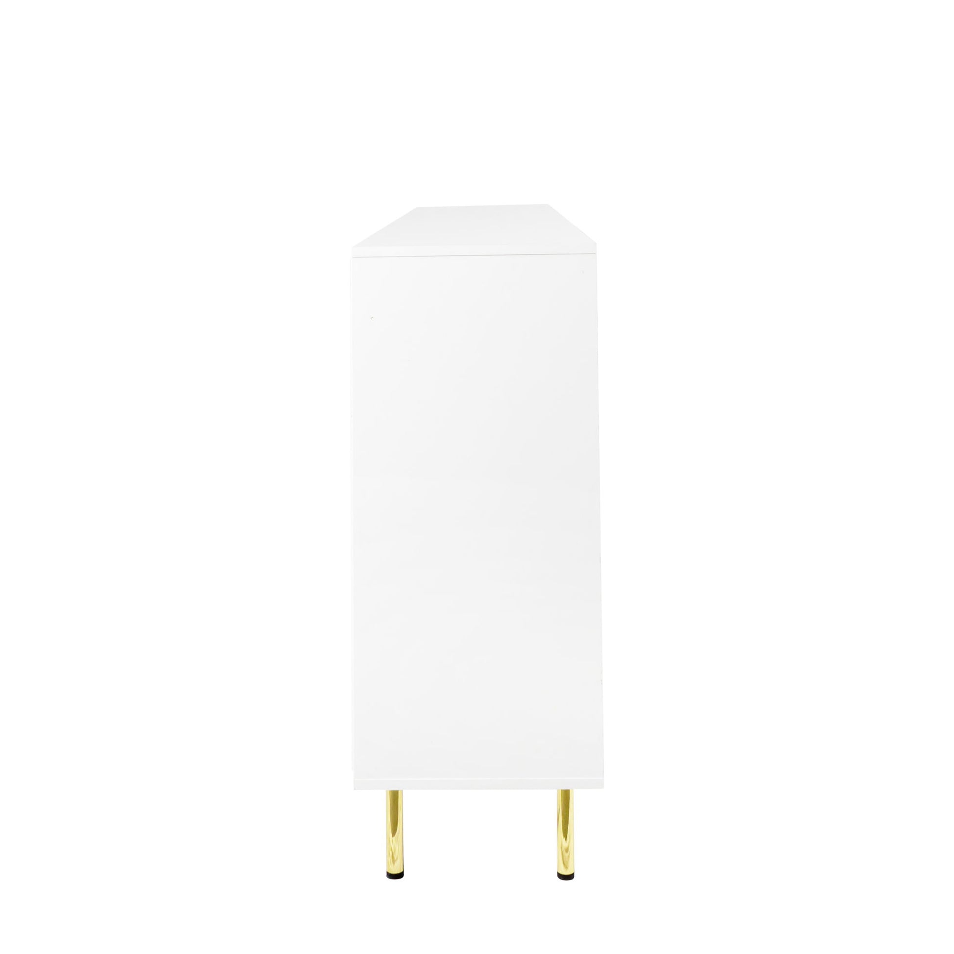 3 Door Large Storage Sideboard With Handles For Kitchen, Dining Room And Living Room, Accent Buffet Cabinet, Coffee Bar Sideboard Cabinet With 3 Doors - White / Gold