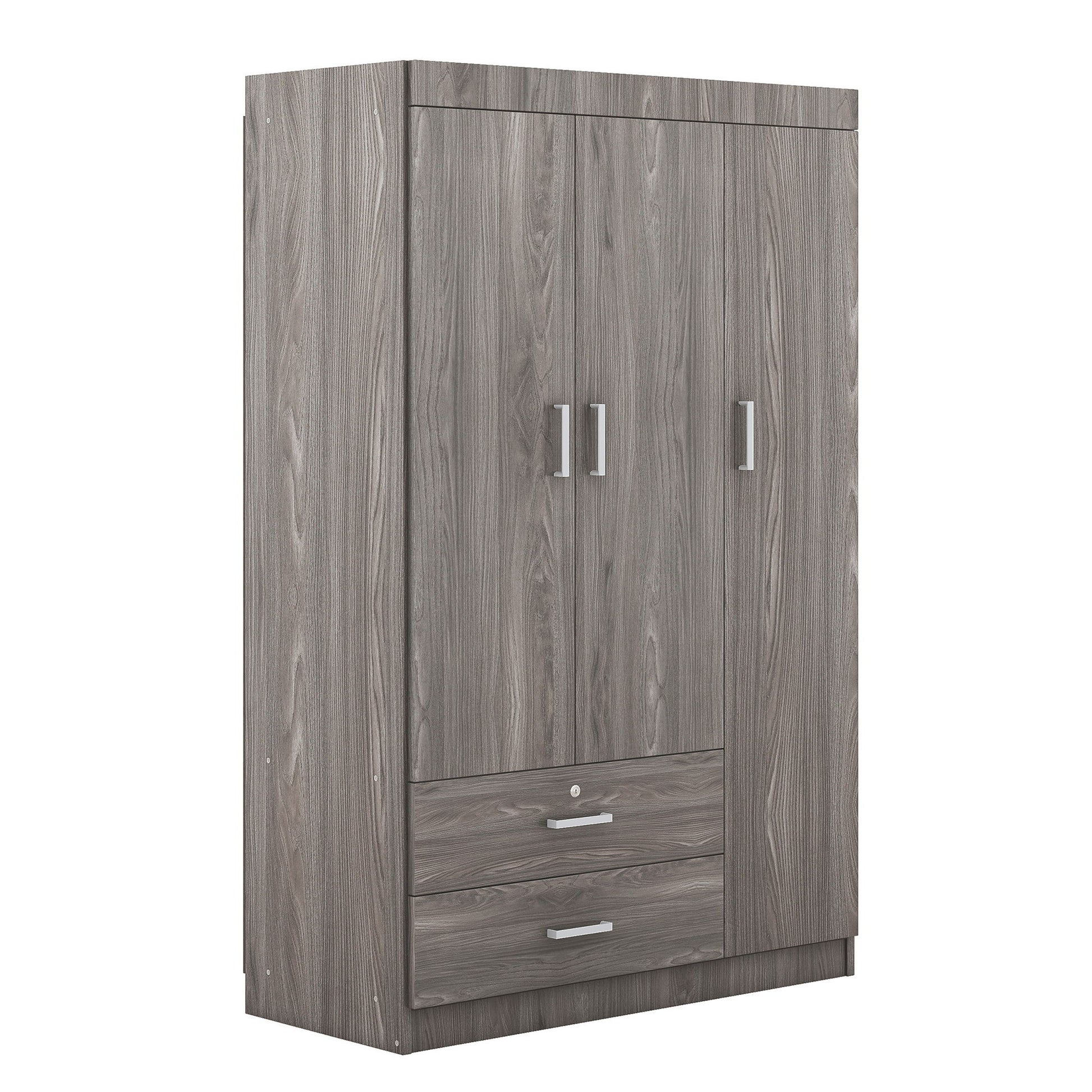 3 Door Wardrobe With 2 Drawers, Grain Effect - Gray