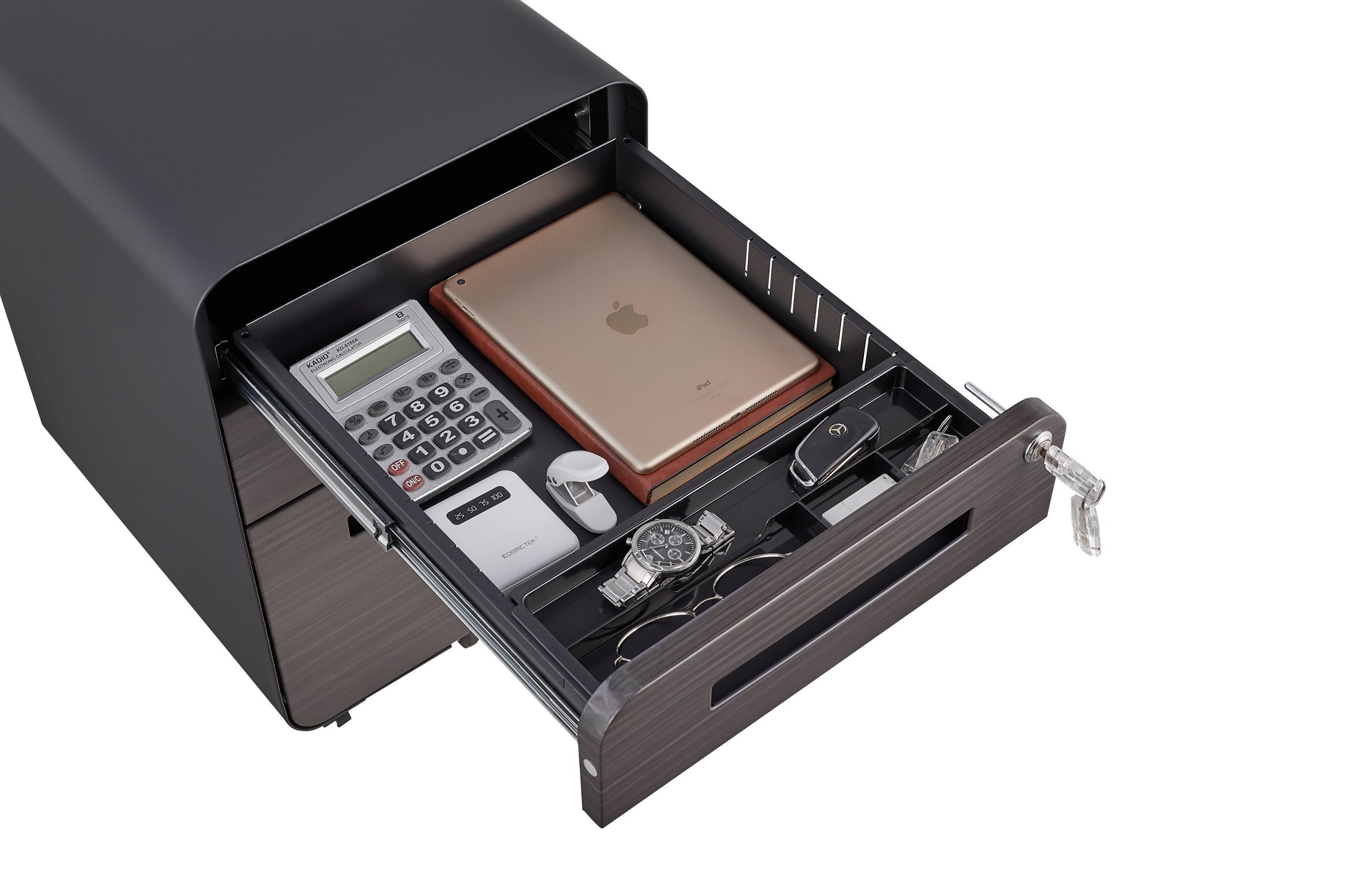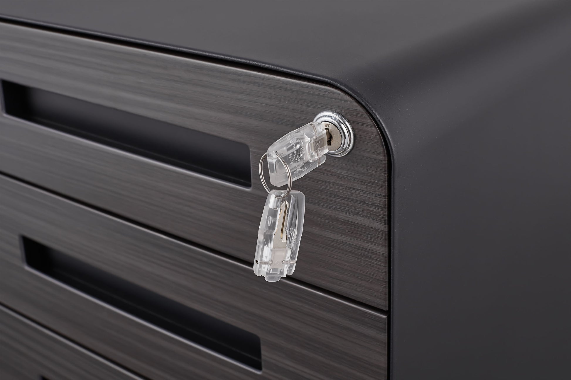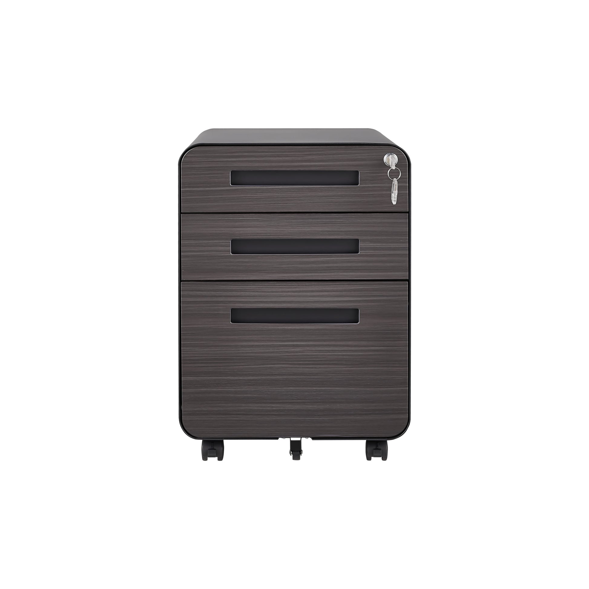- Lockable File Cabinet: Comes fully assembled except for casters. Features a single lock securing all three drawers, with 2 keys provided.