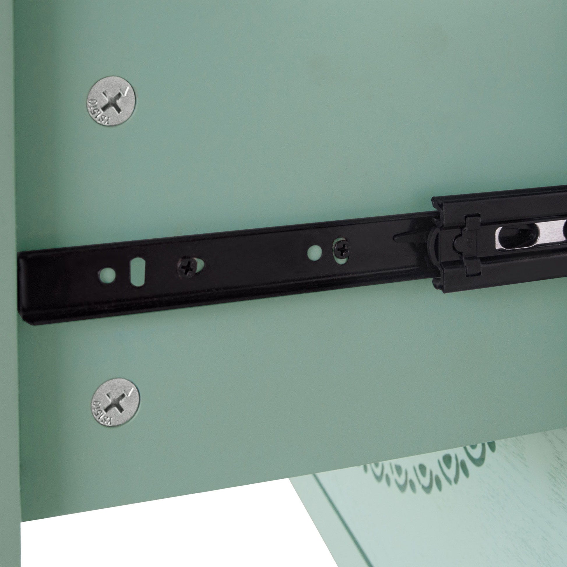 3 Drawer Storage Cabinet With Hollow Carved Design And Metal Handles, Chest For Entryway, Living Room Or Bedroom - Light Green