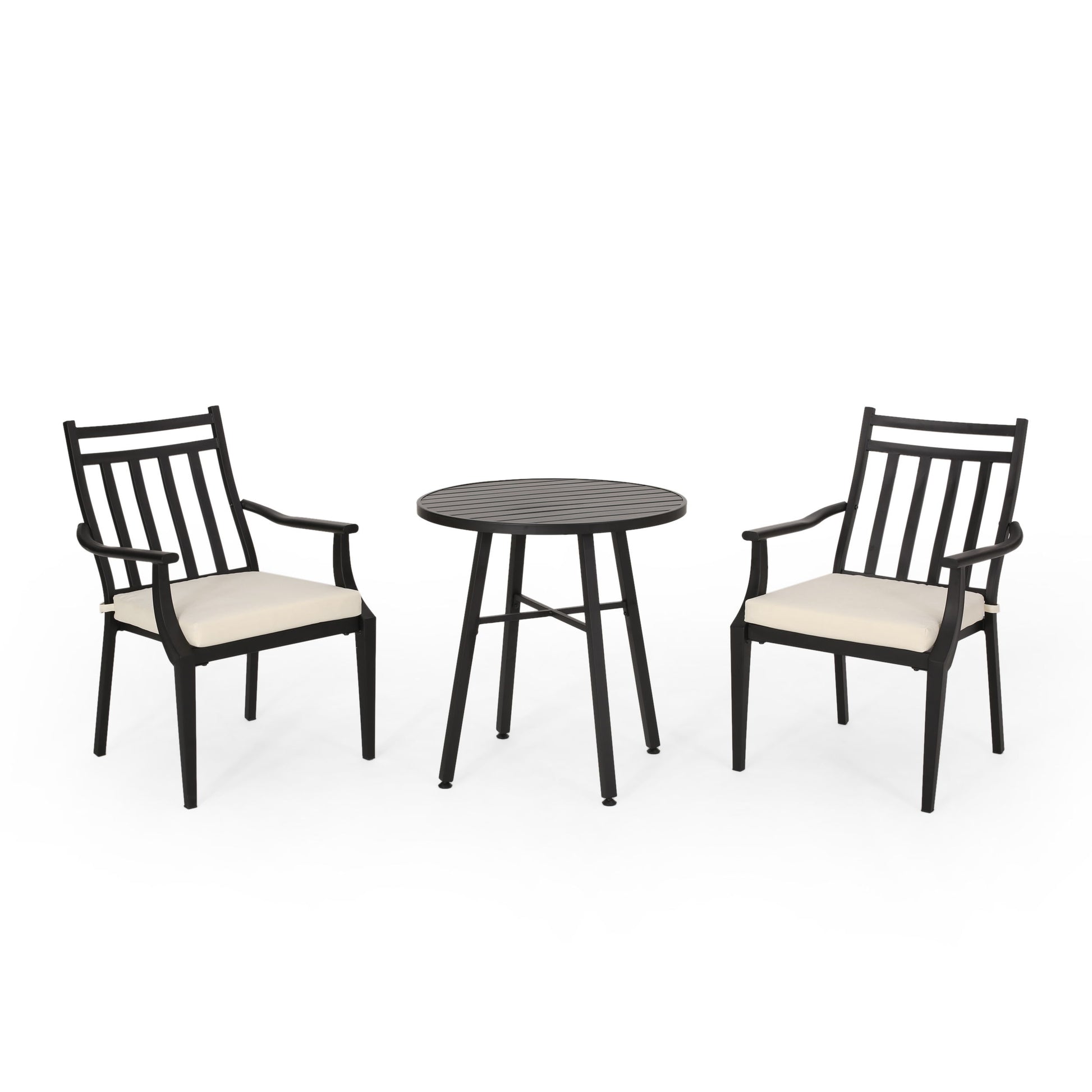 3 Piece Metal Bistro Set With 2 Curved Armrest Chairs - Black