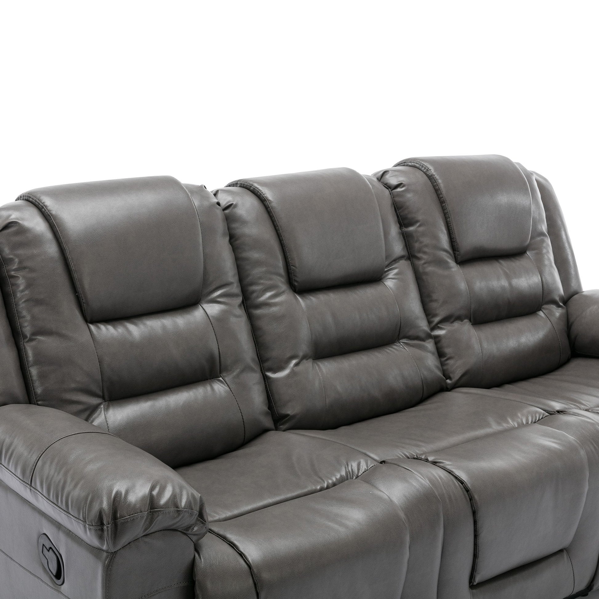 3 Seater Home Theater Recliner Manual Recliner Chair With Two Built-In Cup Holders For Living Room - Gray