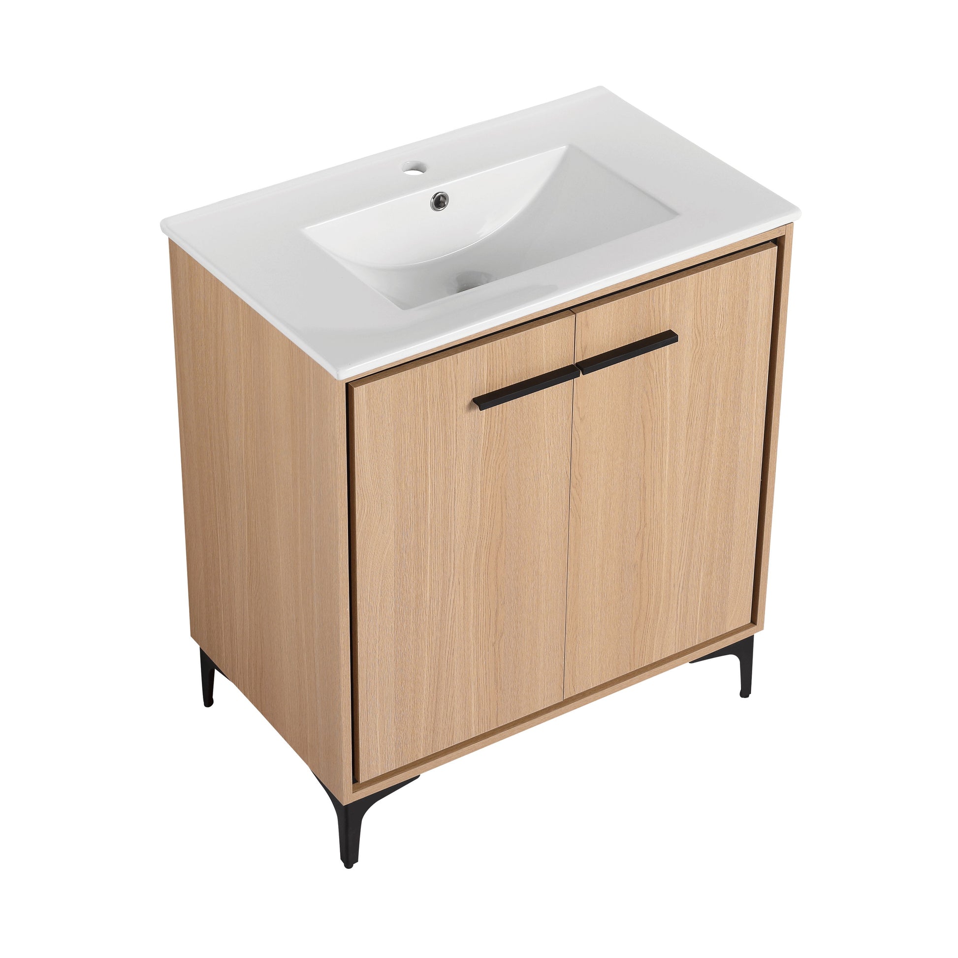 30" Bathroom Vanity Base With Basin And Storage Cabinet - Oak
