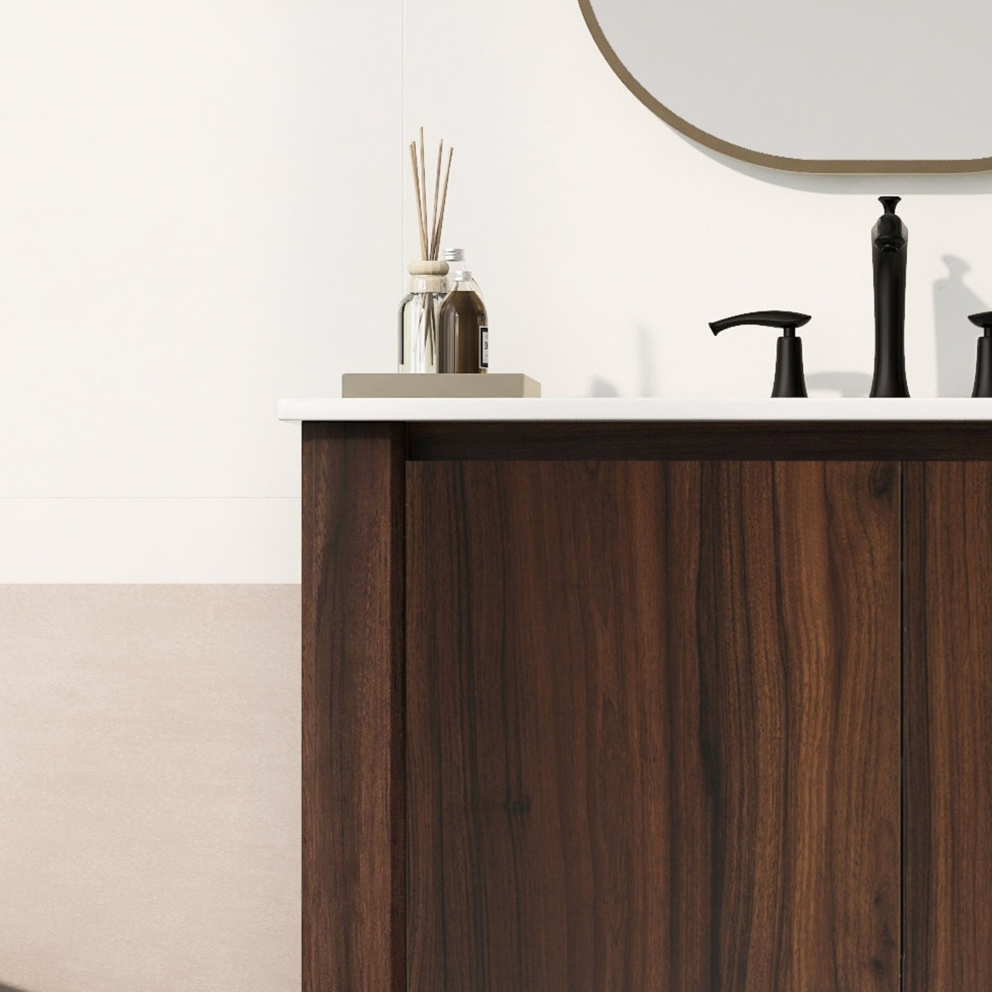 - Open Bottom Shelf for Added Functionality and Style: The vanity includes a versatile open shelf at the bottom, perfect for storing frequently used items like towels, baskets, or decorative pieces.