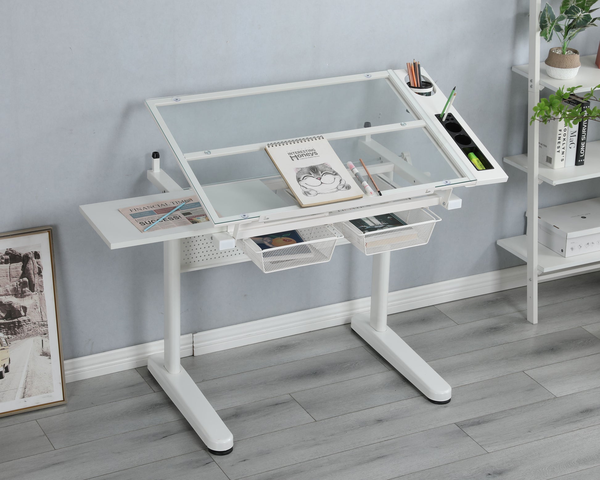 - Tilted Tempered Glass Desktop: 5mm transparent glass top tilts from 0 to 75° for versatility.