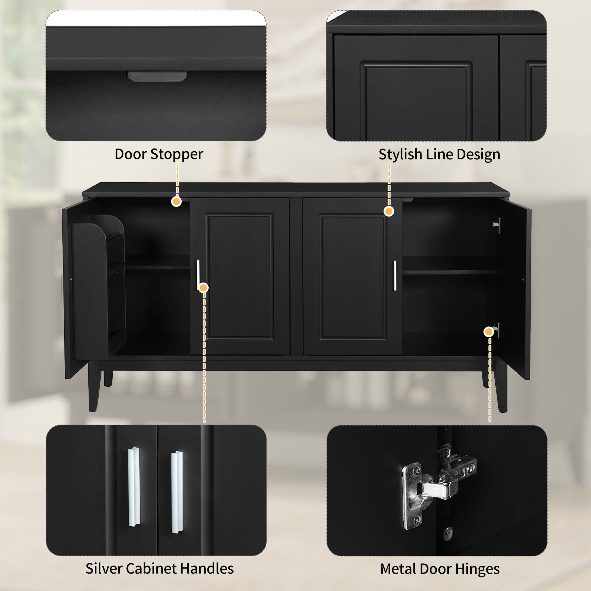 4 Door Sideboard Storage Cabinet With Door Shelf For Living Room And Dining Room, 2 Large Cabinets With Adjustable Shelf - Black