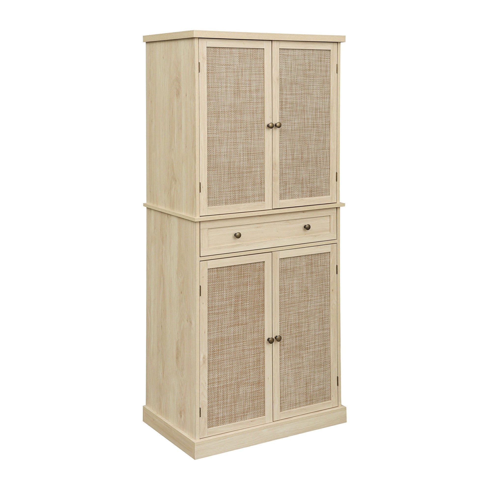 4 Door Storage Cabinet With 1 Drawer And 4 Adjustable Inner Shelves - Natural
