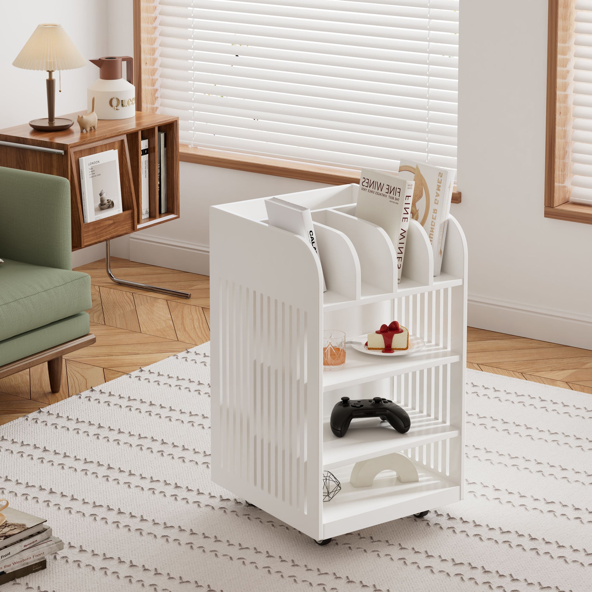 4 Tier Kitchen Island Cart With Spice Rack & Locking Casters, Simple Design Mobile Kitchen Storage Islands For Kitchen Living Room Bedroom - White