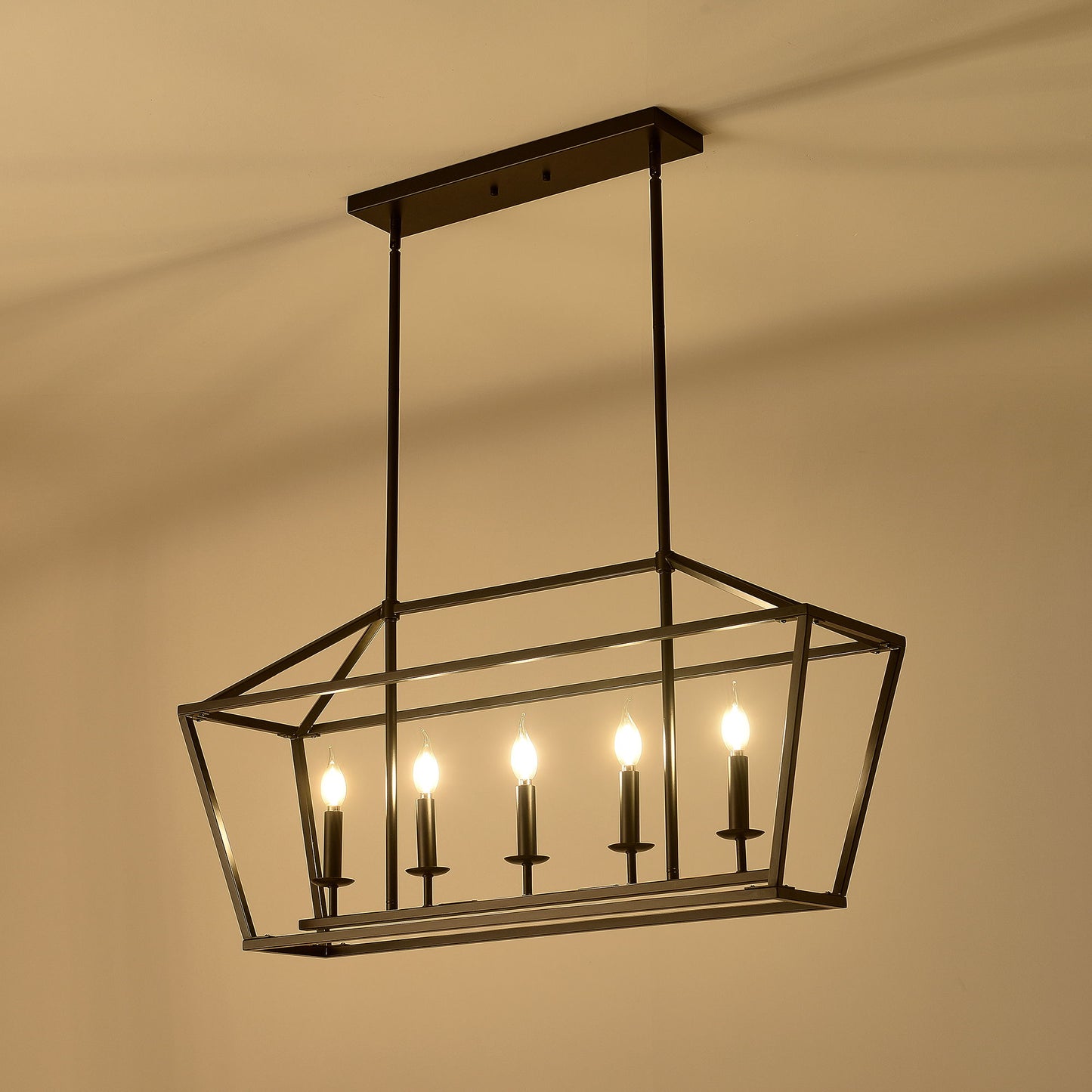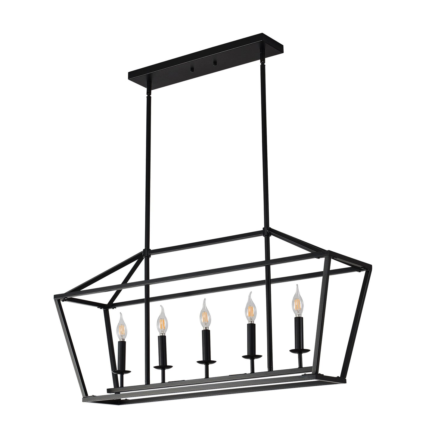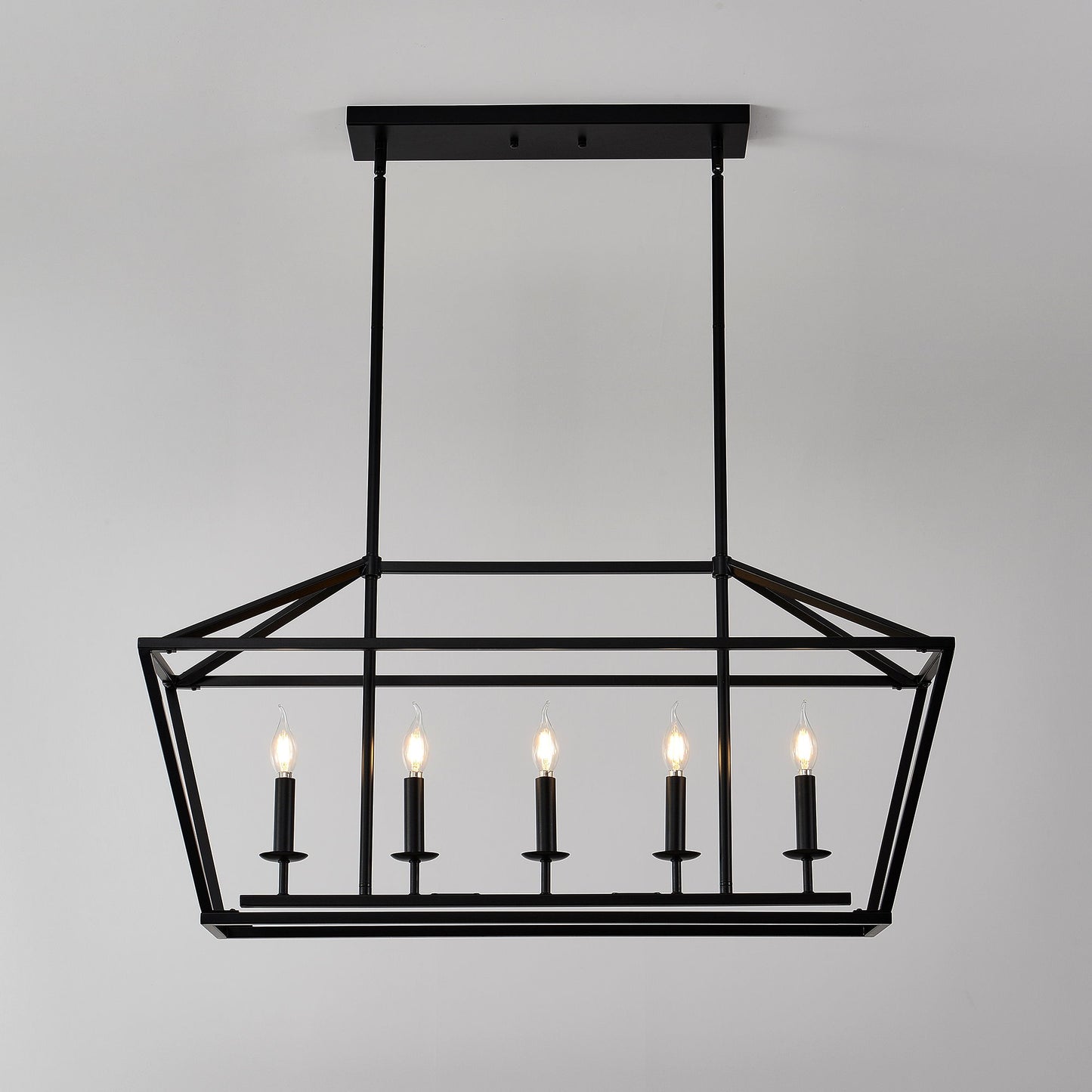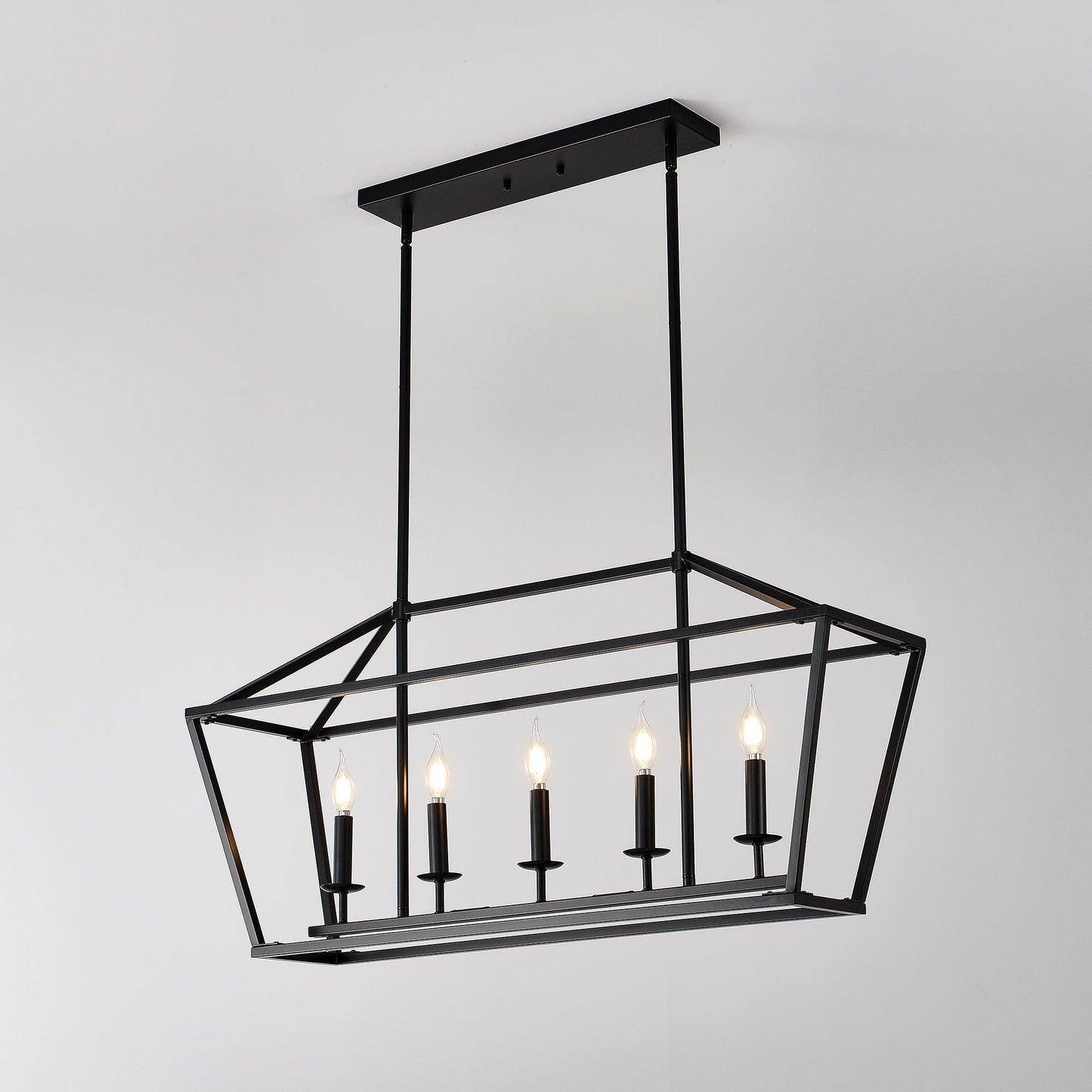 5 Light Farmhouse Kitchen Island Lighting, 5 Light Industrial Linear Chandelier For Dining Room Metal Hanging Pendant Light Fixture For Bedroom Living Room Hallway Conference Room - Matte Black