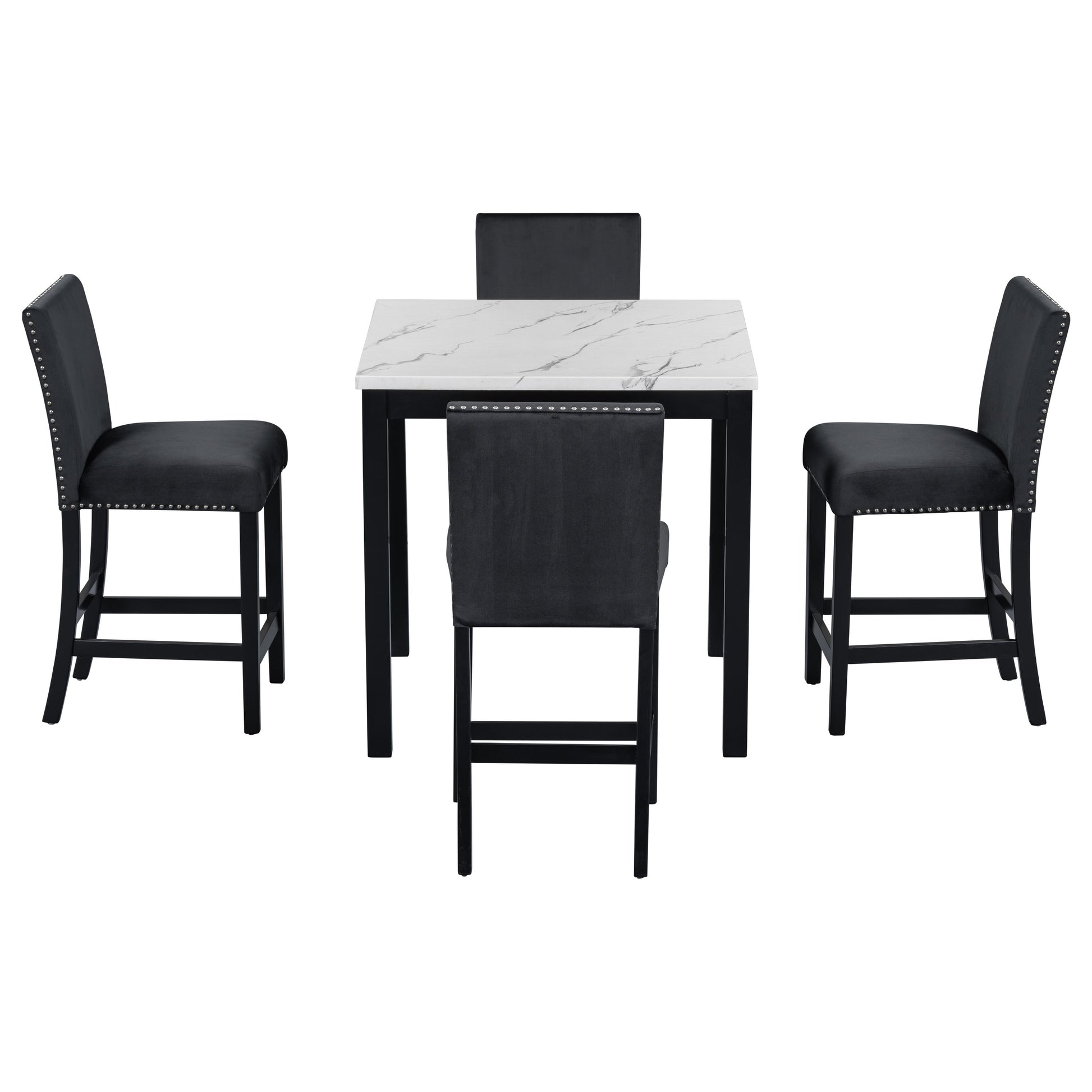 5-Piece Counter Height Dining Table Set With One Faux Marble Top Dining Table And Four Velvet Upholstered Chairs - Black
