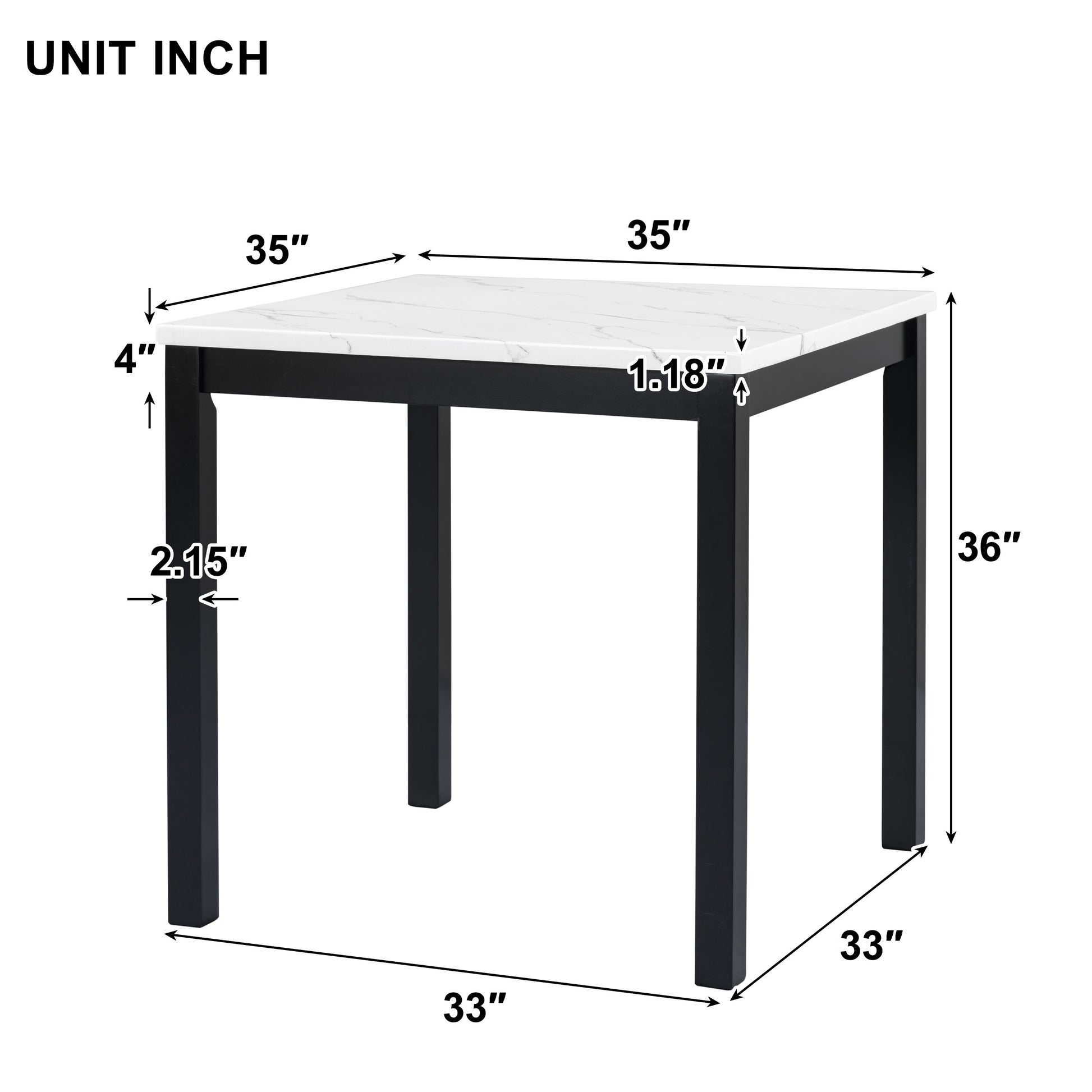 - Stylistic Elements The faux marble dining table and velvet cushioned chairs with sturdy rubber wood legs complement various home decors, instantly brightening your space. The chic silver nails add elegance to the chair design.