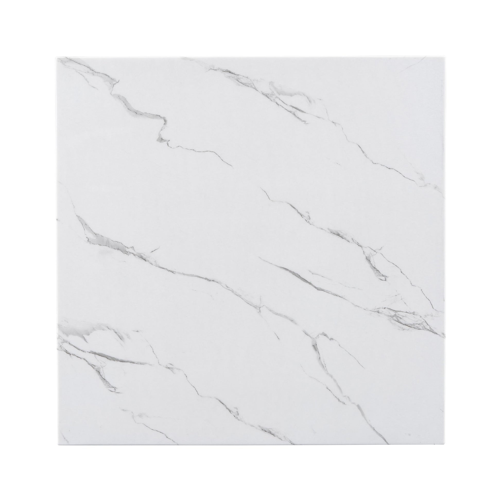 - Shiny and Glossy Table Top Crafted with sophisticated technique using MDF and marble veneer, this faux marble dining table boasts lasting glossiness and sturdiness. The sleek finish adds a touch of elegance to your kitchen or dining room.