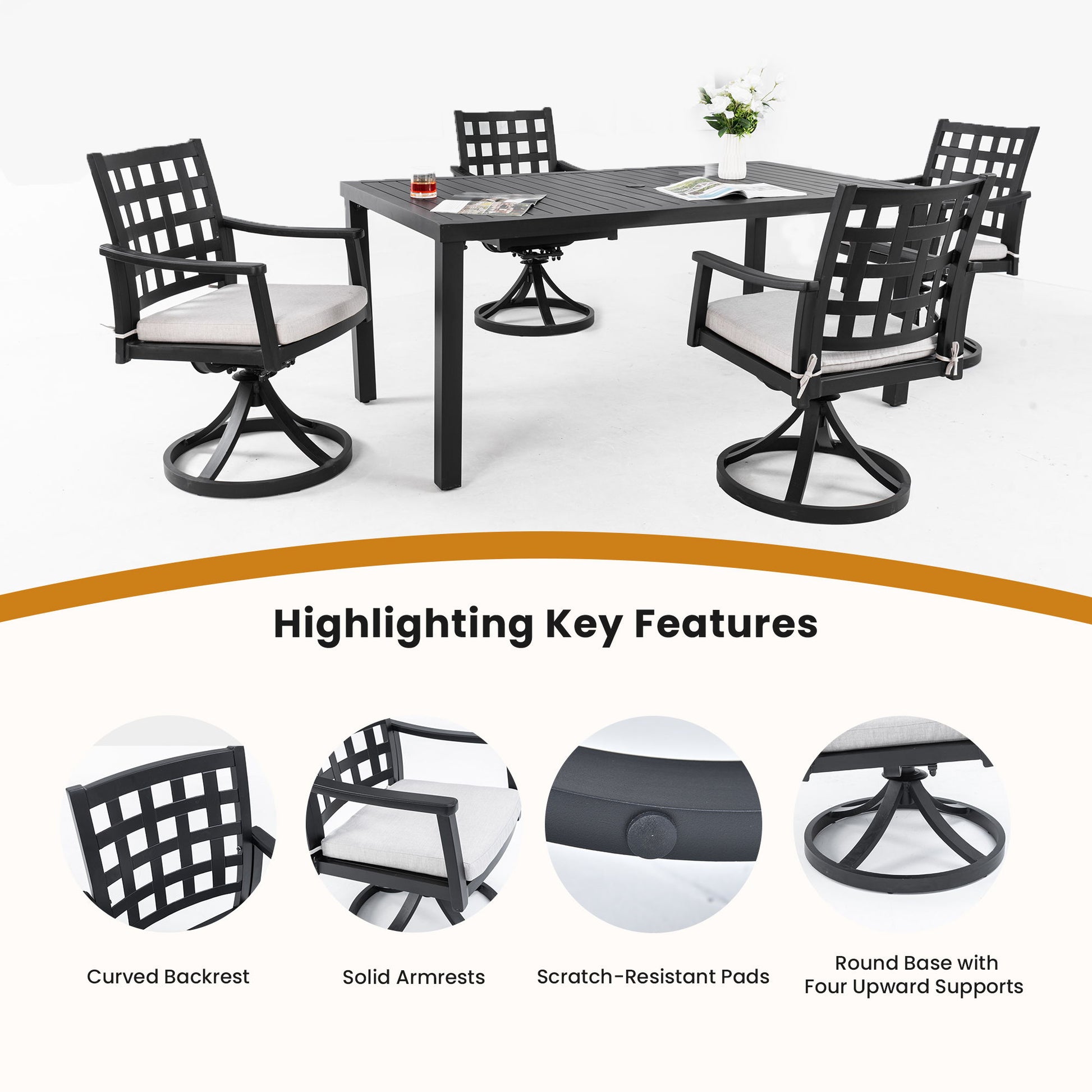 5 Pieces Outdoor Patio Dining Set, Rectangular Table & 4 Swivel Rock Dining Chairs With Sunbrella Cushion - Ember Black