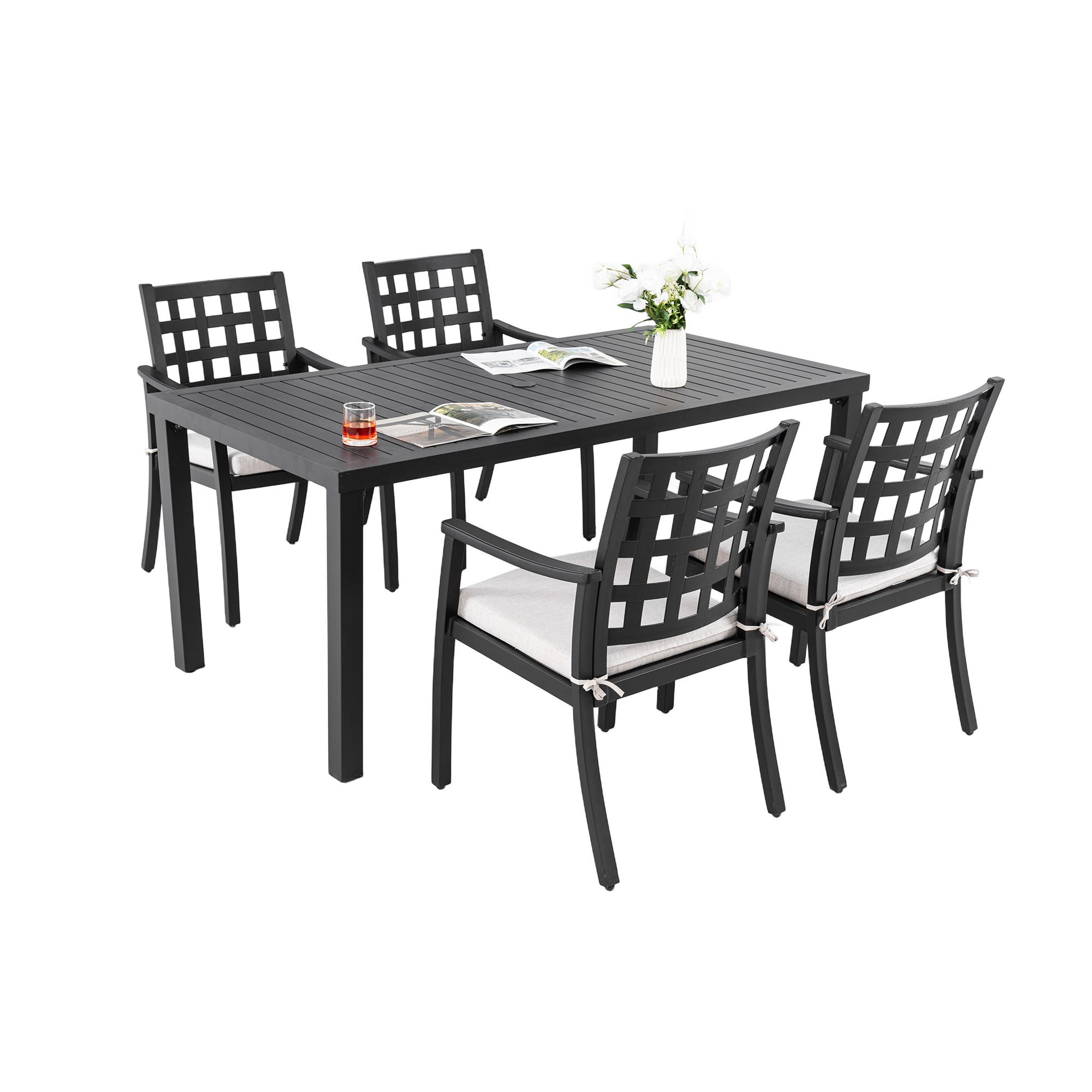 5 Pieces Outdoor Patio Dining Set, Rectangular Table And 4 Stationary Dining Chairs - Ember Black