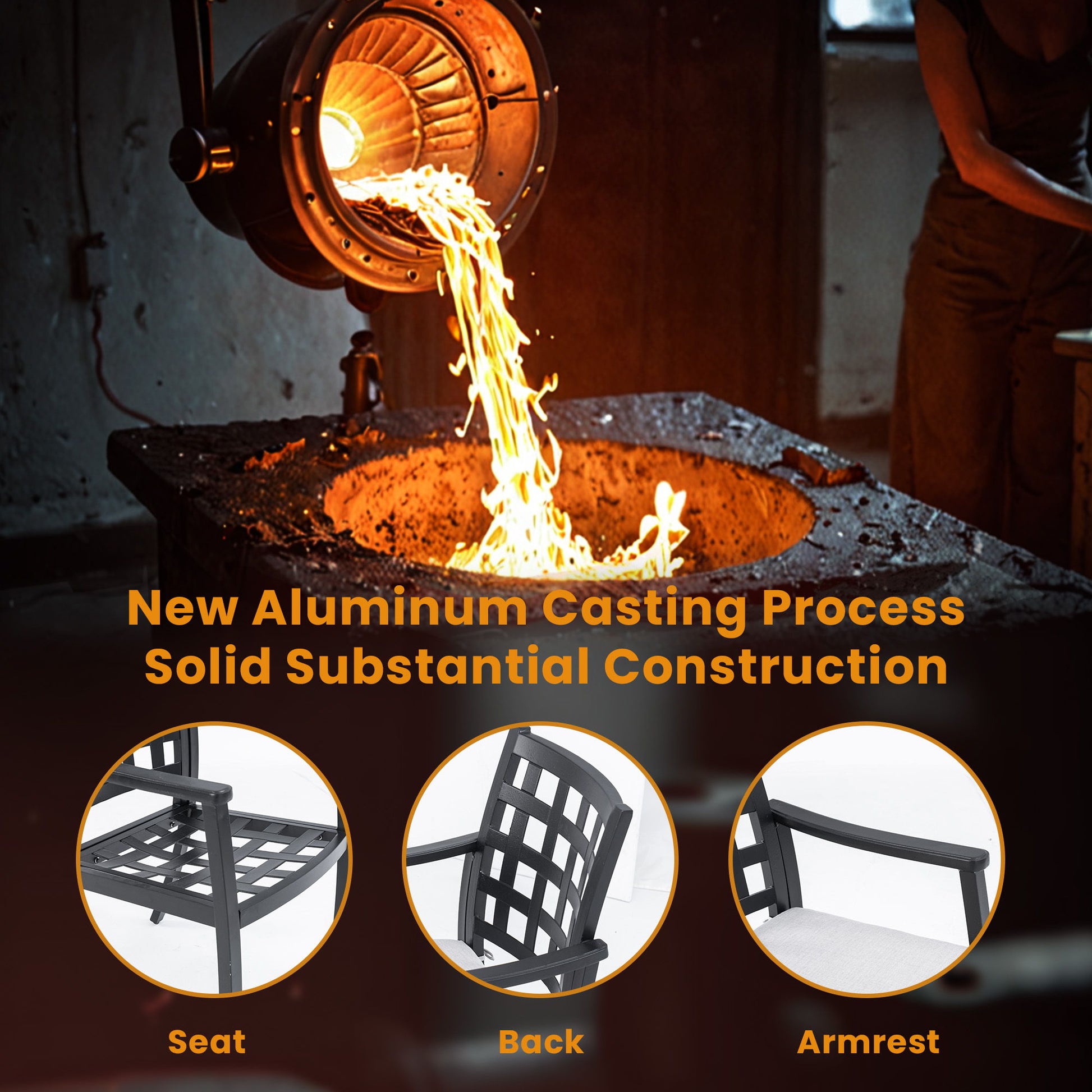 - Elegant & Versatile Design: Features a refined cast aluminum lattice backrest, seat, and armrests with graceful curves that combine classic elegance and modern simplicity - ideal for diverse outdoor settings.