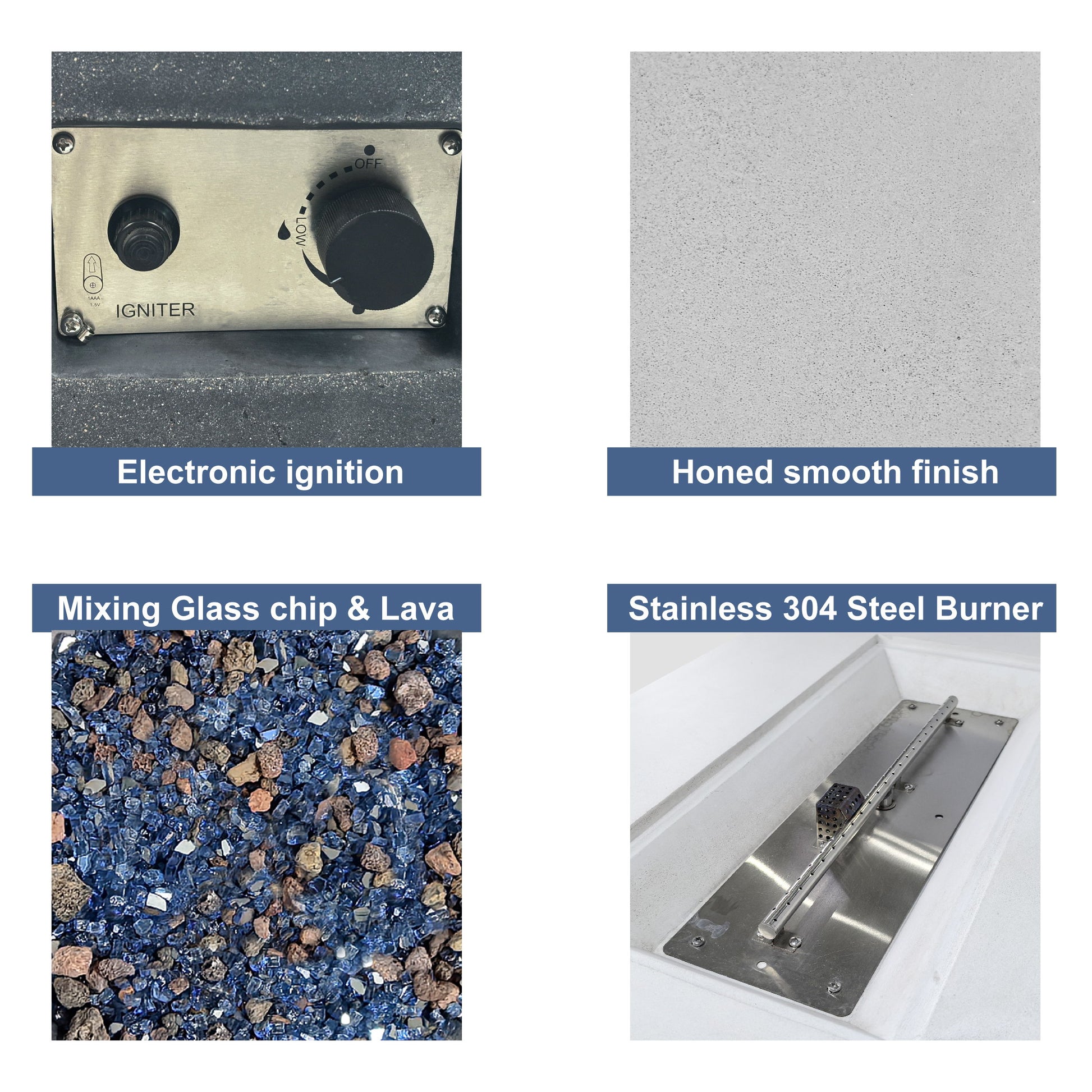 52 " Outdoor Concrete Propane Gas Rectangle Fire Pit Table - Dark Gray Color