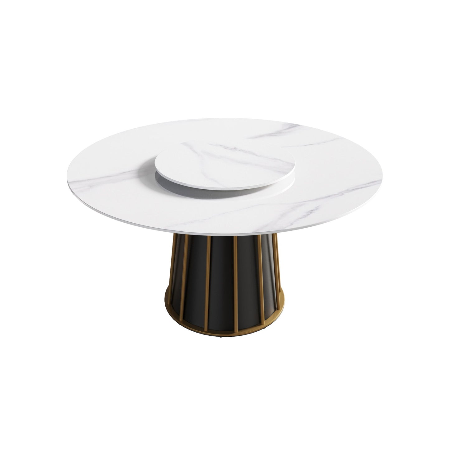 53.15" Modern Artificial Stone Round Panel Metal Iron Base Dining Table, Can Accommodate 6 People-23.62" Artificial Stone Turntable (Not Including Chairs) - White / Black
