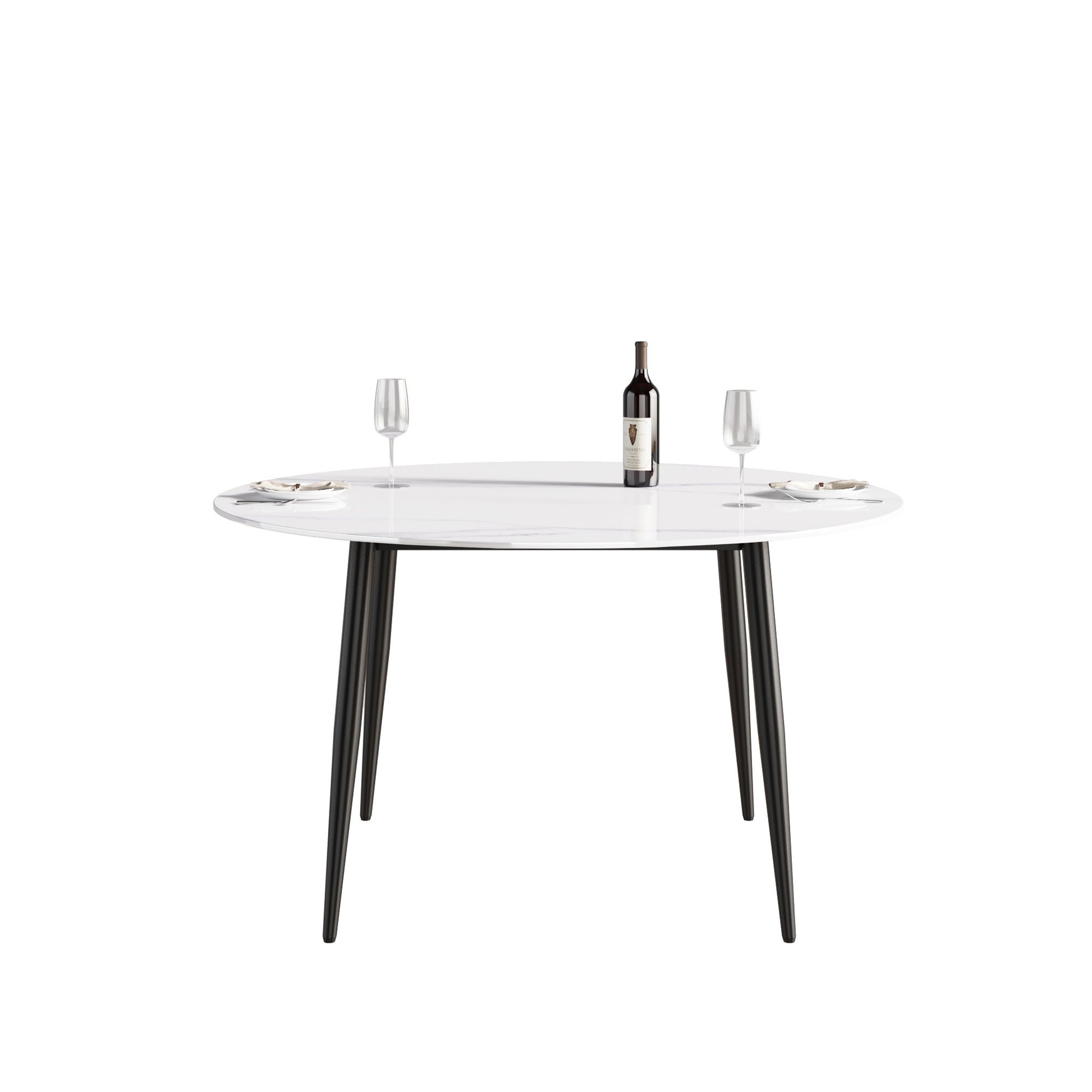 53.15" Modern Man-Made Stone Round Metal Dining Table-Position For 6 People - White / Black