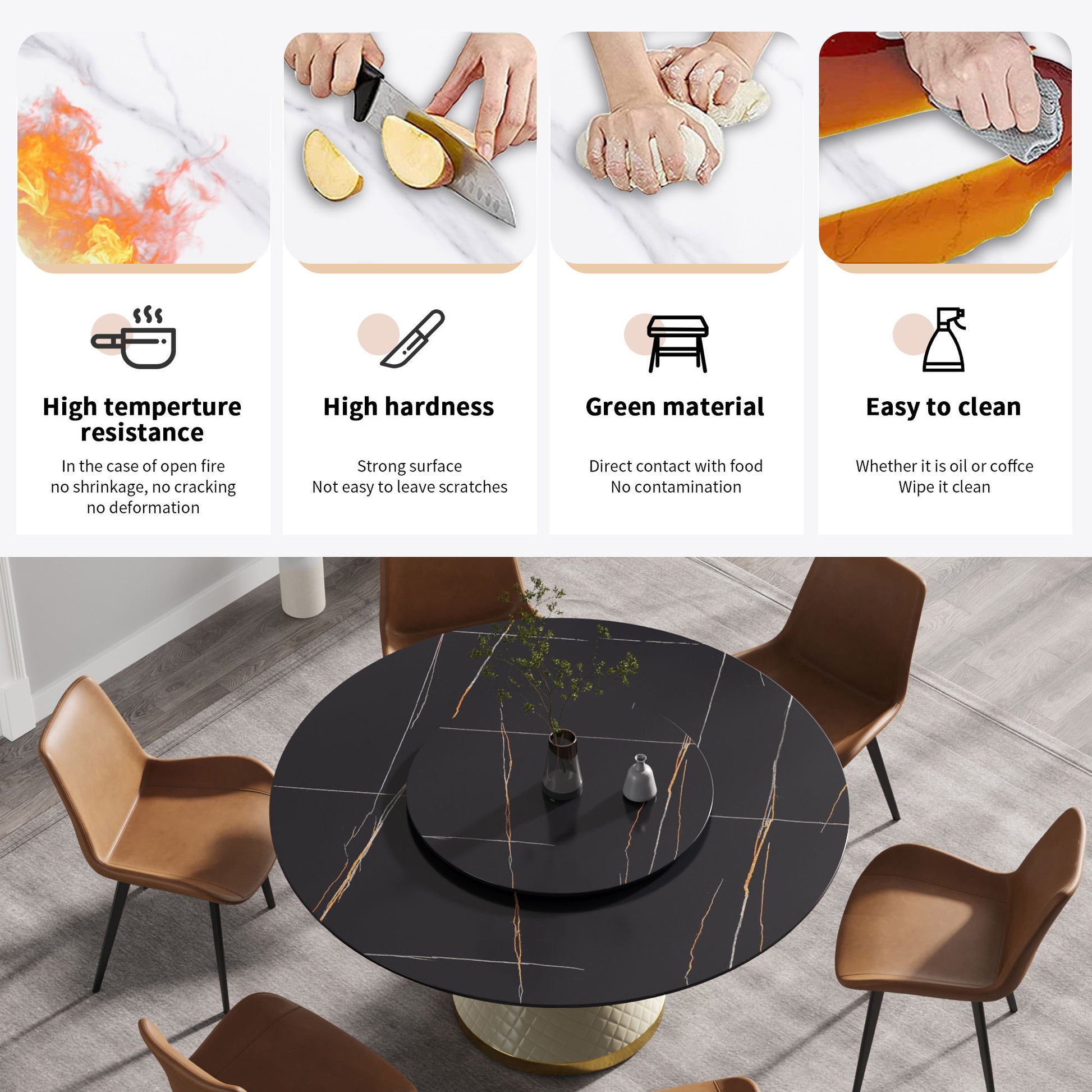 59.05" Modern Artificial Stone Round Carbon Steel Base Dining Table, Can Accommodate 6 People, Artificial Stone Turntable - White / Black