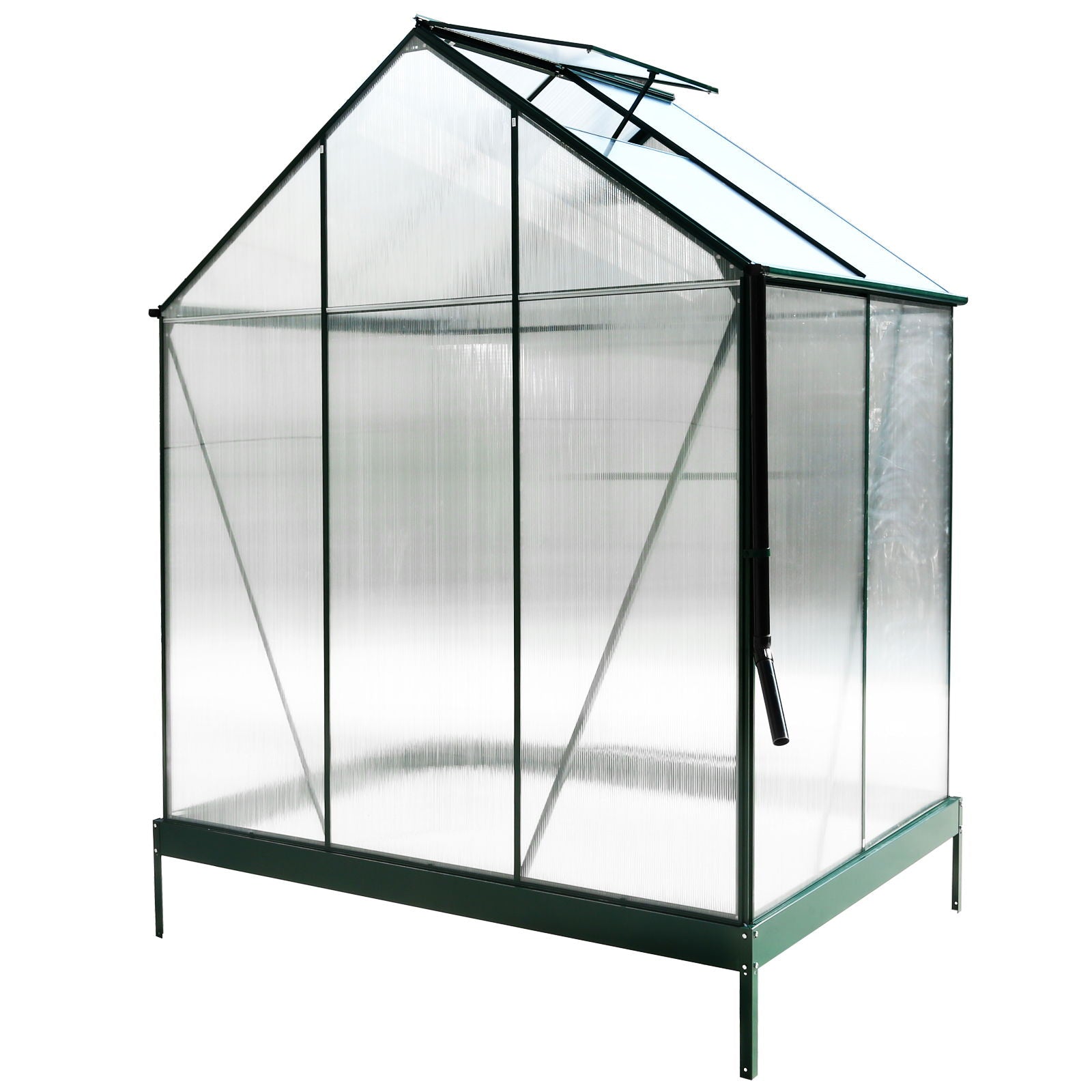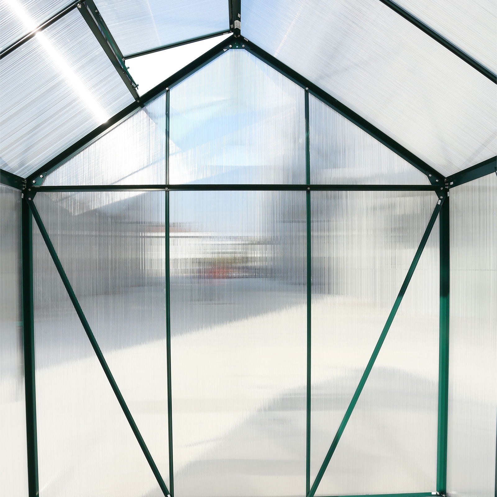 6.3'x4.2'x7' Polycarbonate Greenhouse, Heavy Duty Outdoor Aluminum Walk-In Green House Kit With Rain Gutter, Vent And Door For Backyard Garden - Green