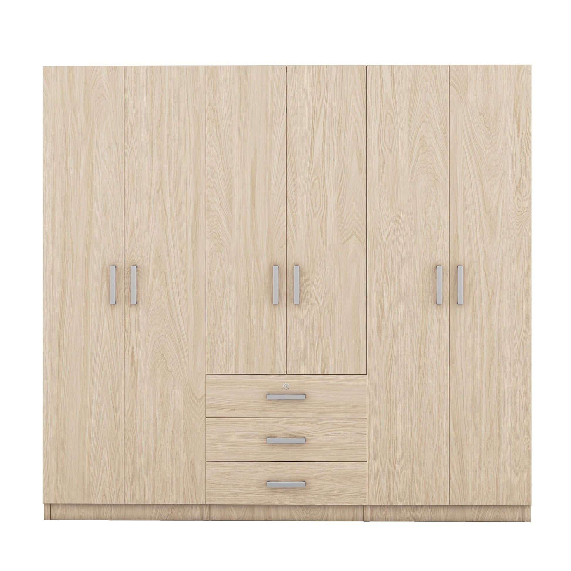 6-Doors Wooden Wardrobe Storage Space Maximization