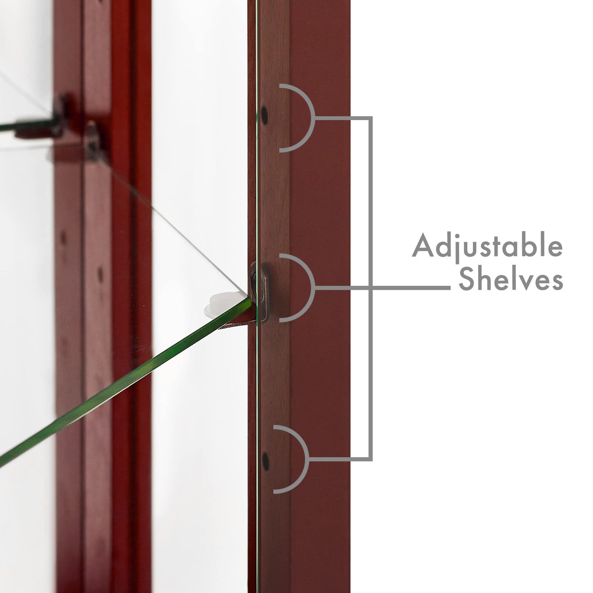 - Mirrored Back Panel: Full-height mirrored panel enhances visibility and offers a stunning view of your collectibles from any angle in the room.