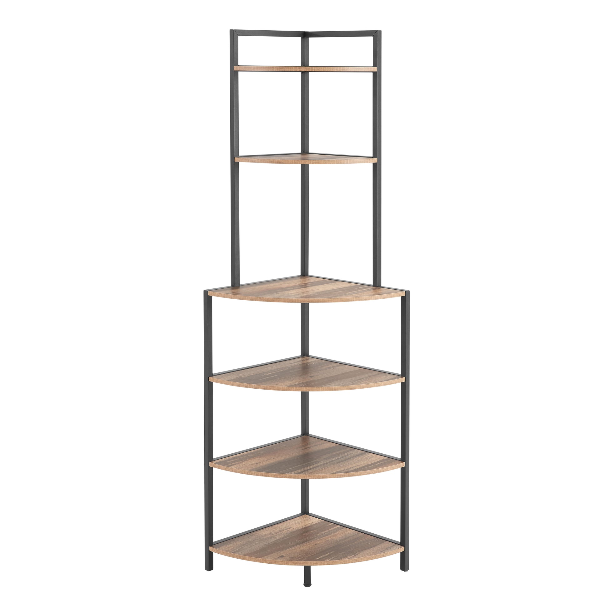 6 Tier Corner Open Shelf Modern Bookcase Wood Rack Freestanding Shelving Unit, Plant Album Trinket Sturdy Stand Small Bookshelf Space-Saving For Living Room Home Office Kitchen Small Space - Rustic Brown
