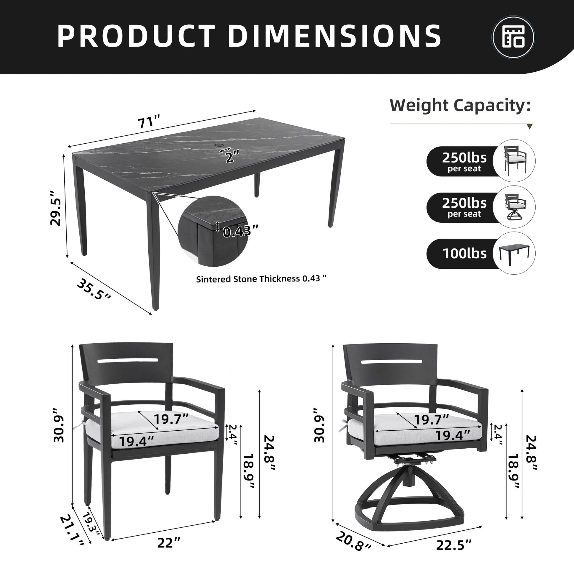 - Premium Tabletop Design: The dining table features a luxurious black sintered stone top with elegant white marble-like veining - offering exceptional durability, weatherproof performance, and scratch resistance ideal for outdoor use.