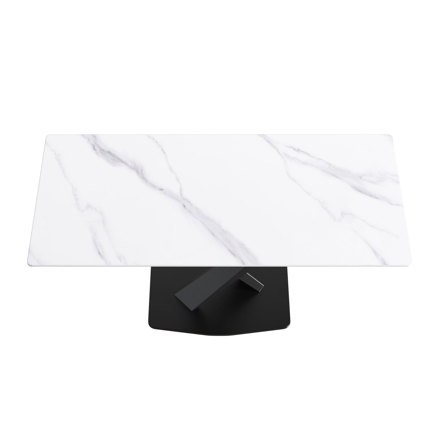 - Elegant Design: This dining table features a sleek rectangular design with a white sintered stone top and black metal legs.