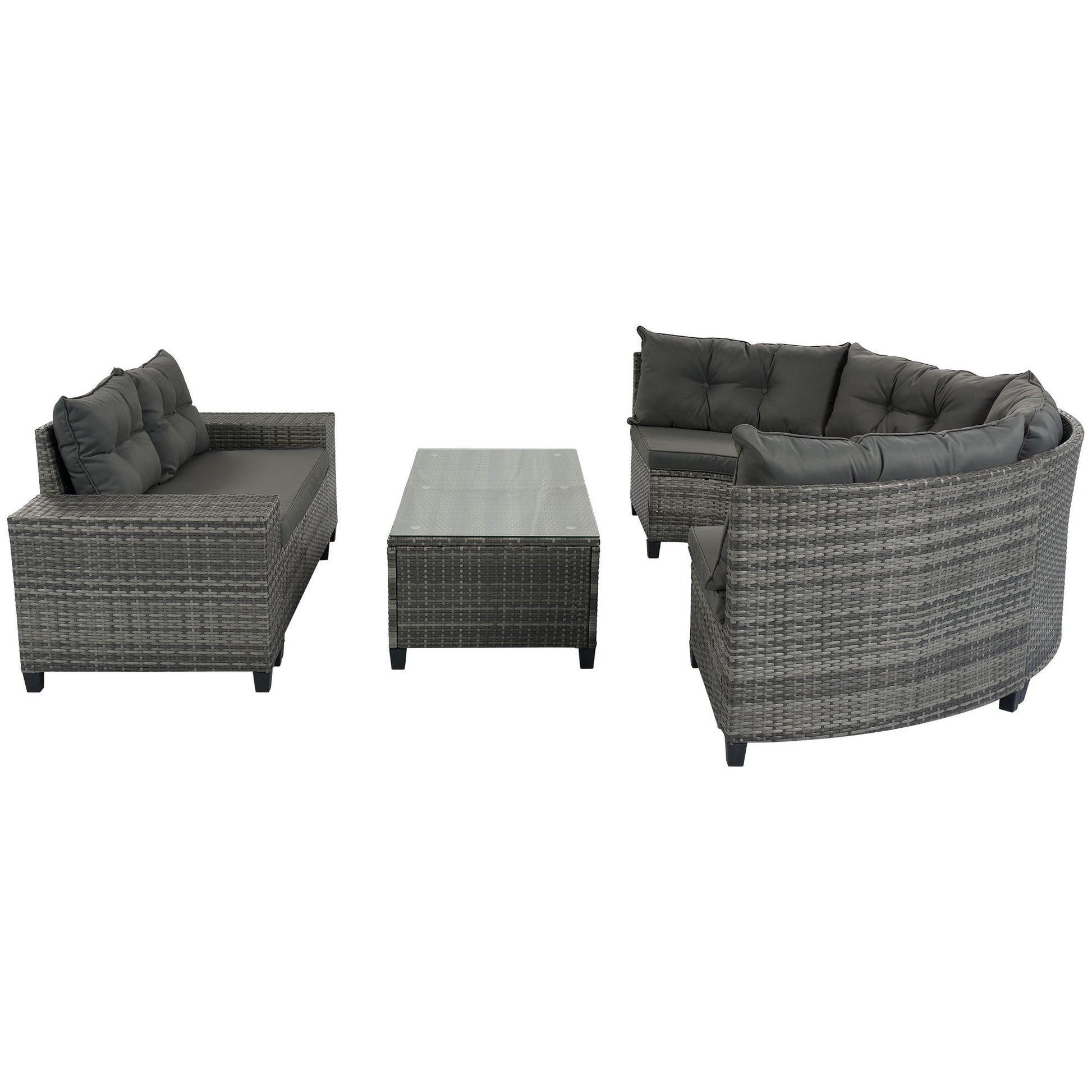 8 Pieces Outdoor Wicker Round Sofa Set, Half-Moon Sectional Sets All Weather, Curved Sofa Set With Rectangular Coffee Table, PE Rattan Water-Resistant And UV Protected, Movable Cushion - Gray