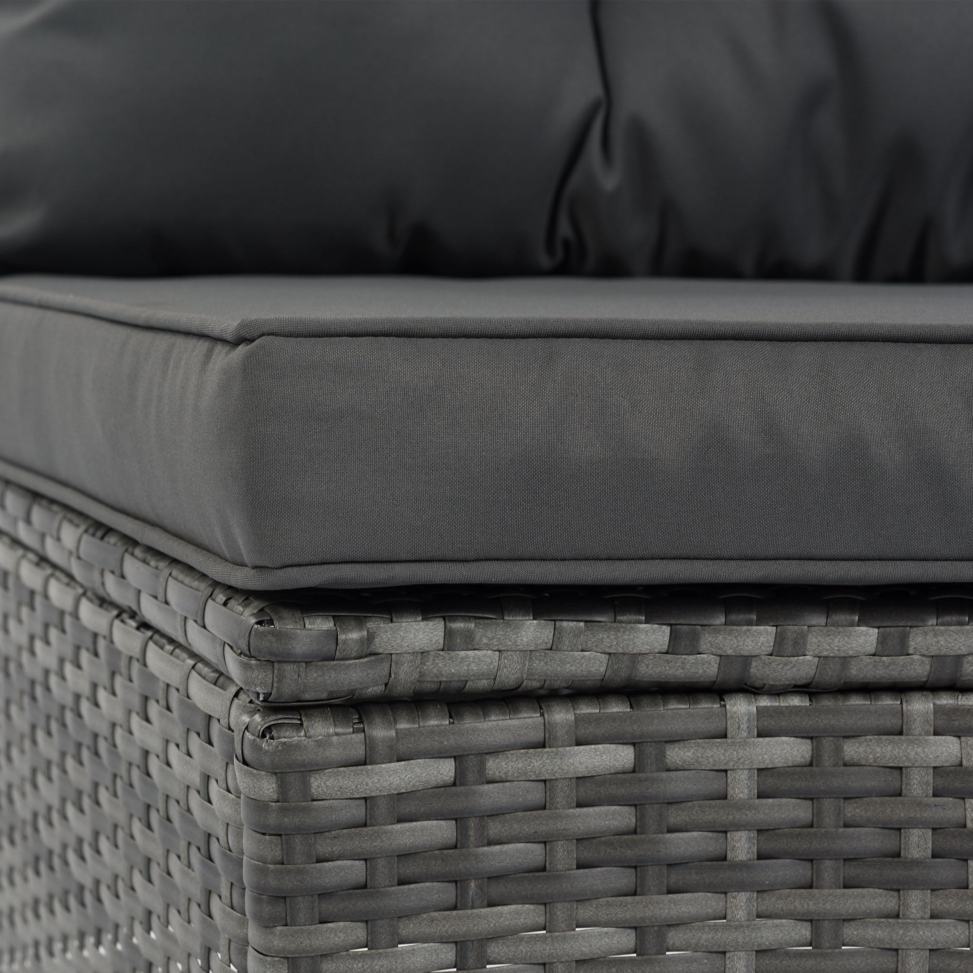 - Excellent Quality: Crafted with weather-resistant PE rattan wicker and a sturdy steel frame, this set ensures durability. The cushions are filled with thick foam and covered in waterproof, UV-resistant polyester fabric for lasting comfort.