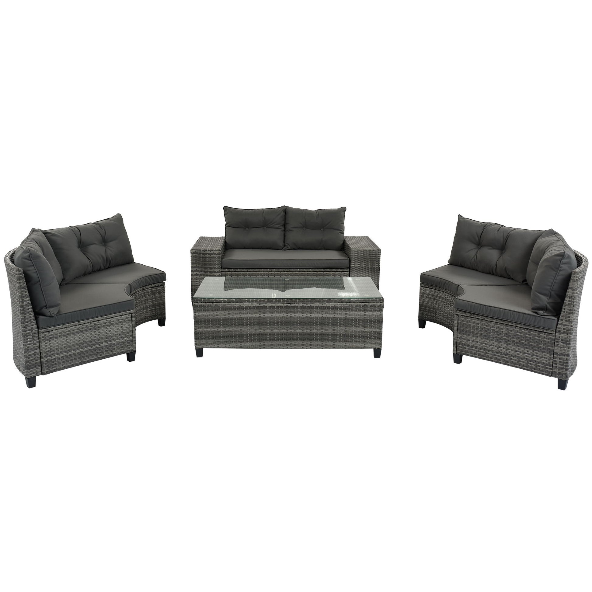 - Curved Design: This 8-piece outdoor sofa set features a modern half-moon shape, creating a unique semicircular lounge that's both stylish and comfortable for your patio or garden.