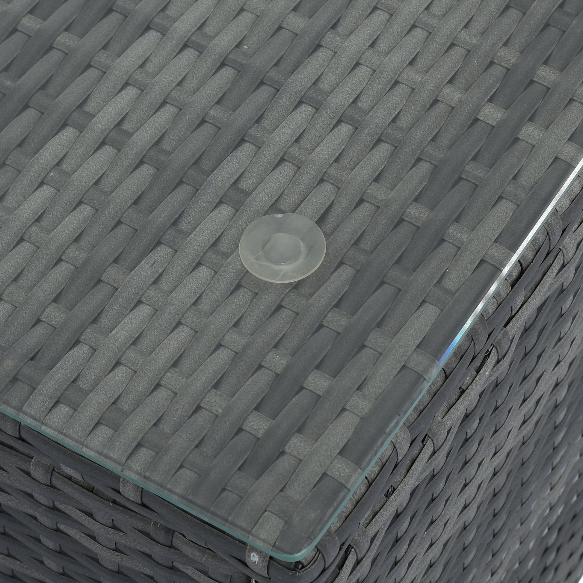 - Comfortable & Multifunctional: Thick back-support cushions provide exceptional comfort. The set includes side and coffee tables with tempered glass tops, perfect for placing drinks or decor. The glass is securely attached with suction cups for safety.
