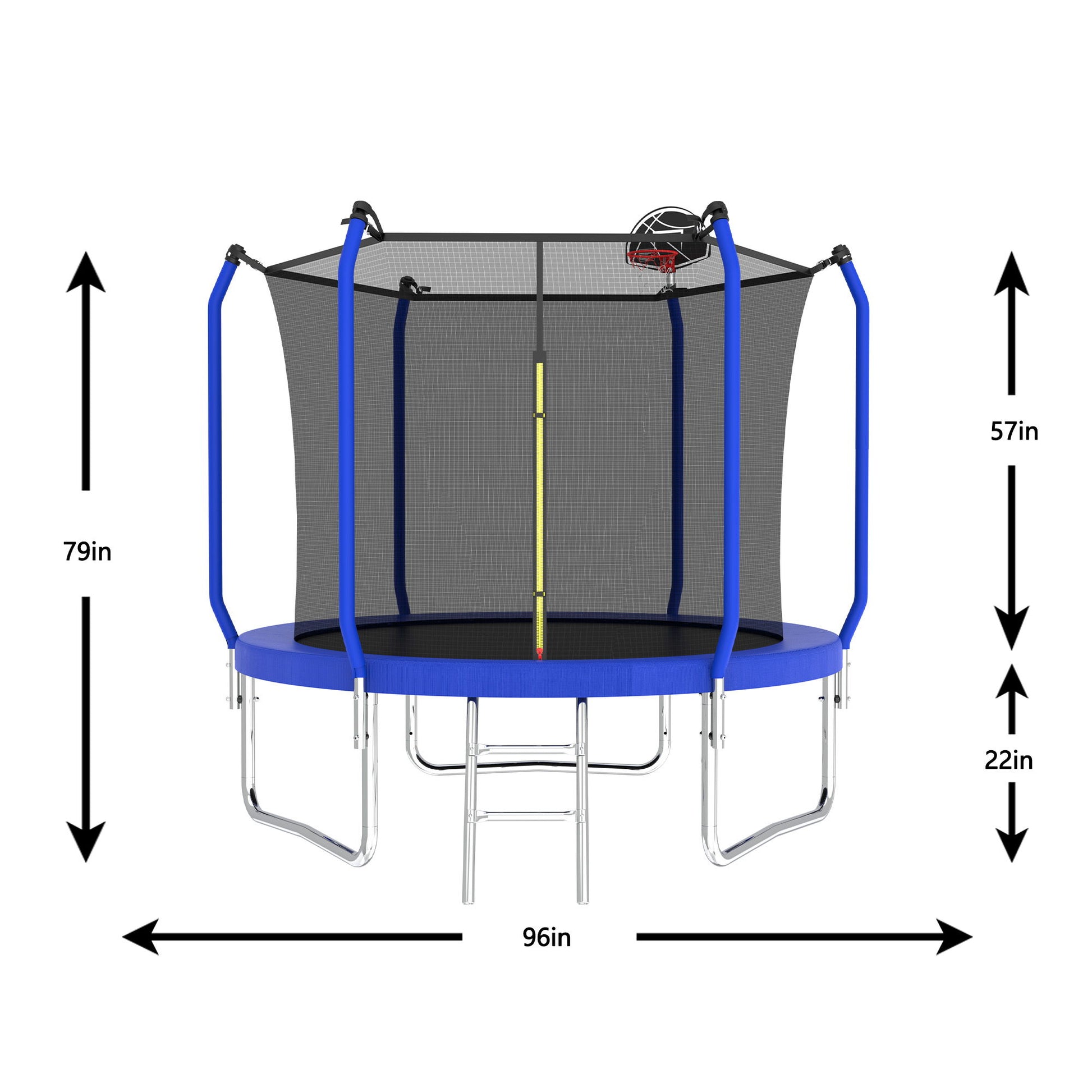 8Ft Trampoline With Basketball Hoop, Astm Approved Reinforced Type Outdoor Trampoline With Enclosure Net - Blue